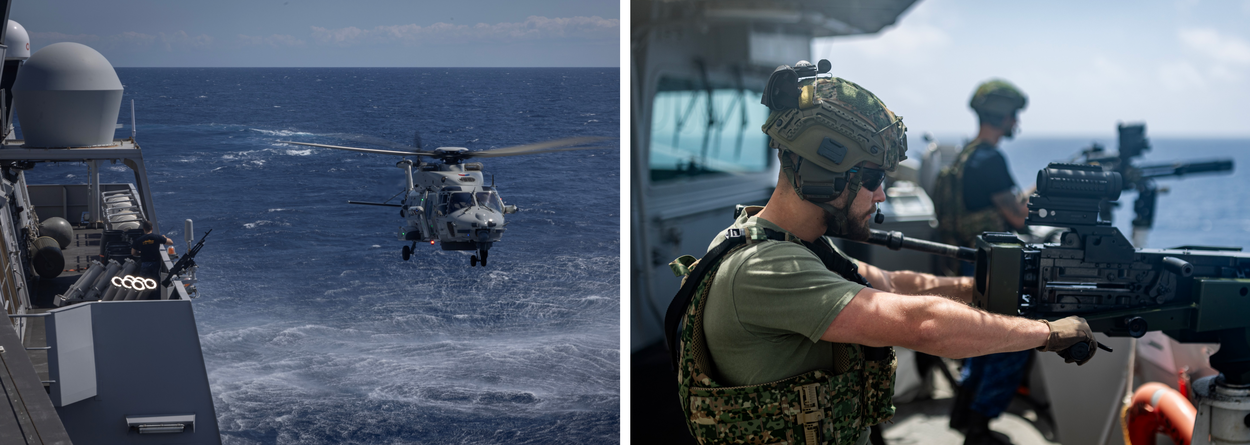 Het eerste deel van de reis, tot en met het havenbezoek aan Pearl Harbor Hawaï, voerde kapitein-luitenant ter zee Yvonne van Beusekom het commando over de Tromp. Zij loodste het schip door de Rode Zee, één van de grootste tactische hobbels tijdens de wereldreis. In dit gebied staat het recht op vrije doorvaart door aanvallen van Jemenitische Houthi’s onder druk. “Door een intensief opwerktraject hadden we het gevoel dat we er klaar voor waren”, blikt Van Beusekom terug. “Door die berusting veranderde het gevoel van spanning in focus.”
