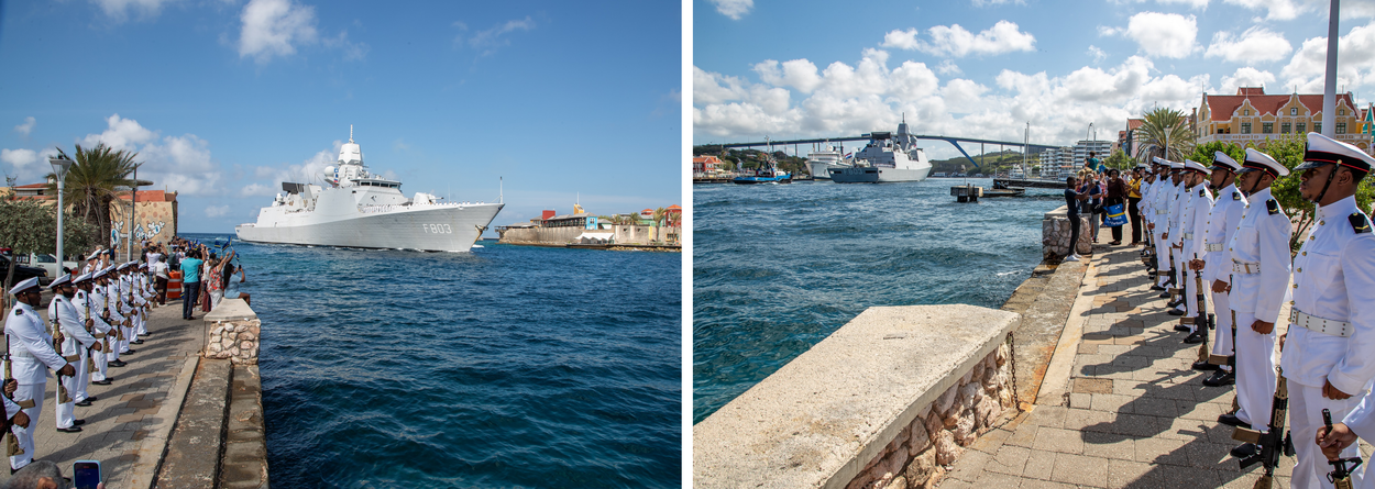 “De laatste afstand tot onze thuishaven besloeg nog de halve wereld”, vertelt de commandant van de Tromp, kapitein-luitenant ter zee Dennis Oorburg. Het schip was maandag nog voor het eerst in twaalf jaar voor een havenbezoek in Curaçao. “Voordat we daar aankwamen, stond iedereen aan dek tijdens de passage van het Panamakanaal om te zien hoe we, verdeeld over drie sluizen, 26 meter omhoog bewogen. En vervolgens in de Atlantische Oceaan uitkwamen. Zo’n ervaring maak je niet dagelijks mee. De bemanning was zeer enthousiast over de reis. Toch verlangden veel collega’s na zes maanden weer naar huis en dat is logisch.”