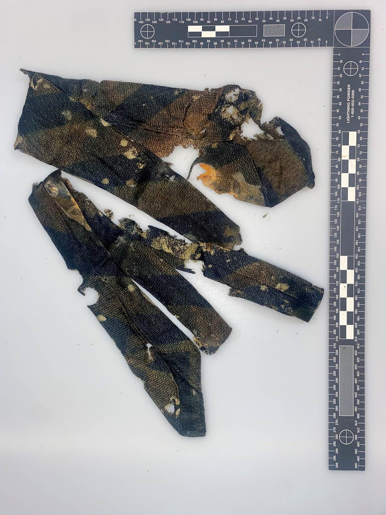 Eveneens bijzonder bij de vondst van het lichaam was de keurig opgevouwen zijden stropdas in een van de borstzakken. “Felgekleurd in royal blue en geel. Die das betekende dusdanig veel voor het slachtoffer dat hij het meenam het gevecht in. Heel bijzonder, maar tot op de dag van vandaag weten we niet waar die das voor was. Het heeft in ieder geval niets te maken met zijn studies aan de universiteit van Kaapstad of Liverpool. Evenmin met het Gloucesterershire Regiment waarbij hij eerder diende, noch het Glider Pilot Regiment.”