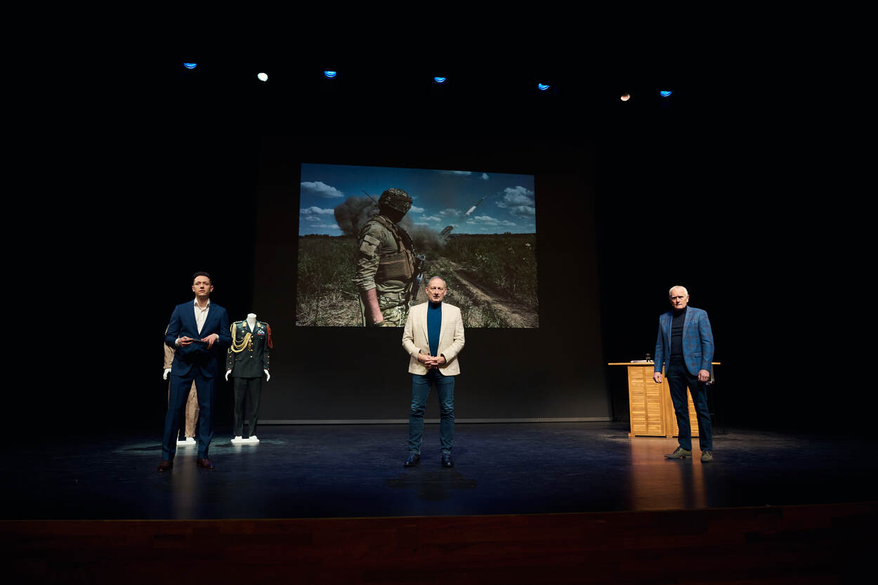 Dat is één van de boodschappen die ook in het theater de revue passeert. Maar ook vragen als: wat betekent de oorlog in Oekraïne voor mij, voor Nederland, en moet ik me voorbereiden op een oorlog? Een van de thema’s die ook iedere show terugkomt is de dienstplicht. “Veel Nederlanders zijn voor terugkeer daarvan, als het maar niet geldt voor hun eigen kinderen”, verzucht De Kruif.