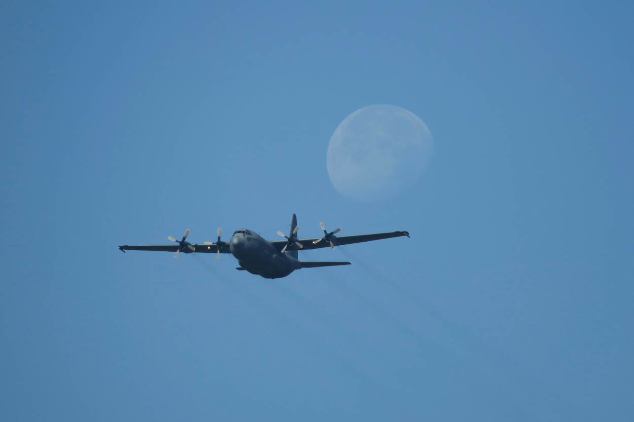 Een foto van luchtmachtoefening Falcon Leap, afgelopen week, mag niet ontbreken. Op de laatste dag stond Mehdi Manshanden al in de vroege ochtend klaar bij Vliegbasis Eindhoven. Daardoor was de maan aan de horizon nog zichtbaar, een magische combinatie toen het C130 Hercules transportvliegtuig haar lens ‘invloog’.