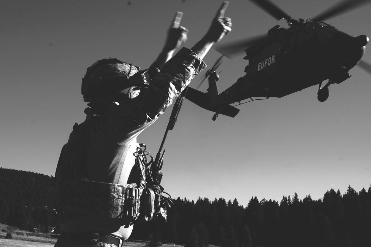 Het zal me een geraas zijn geweest. Kapitein der mariniers Heideveld stuurde deze foto in van een oefening met een Oostenrijkse helikopter van de Europese vredesmacht EUFOR in Bosnië en Herzegovina. De landing van de UH-16 Black Hawk bij Sarajevo wordt als gepland afgebroken door de zogeheten Landing Platform Finder. Die doet dat door de armen te strekken en de heli vervolgens de juiste kant op te dirigeren. Of er door de downwash van de wieken van alles door de lucht vloog, is niet bekend.