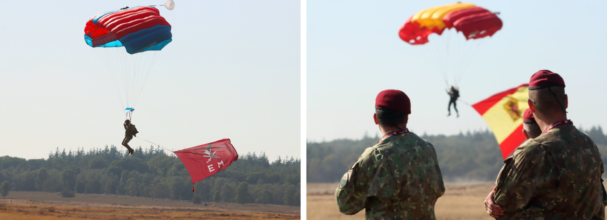 Tijdens de herdenkingsweek van 80 jaar Operatie Market Garden sprongen honderden parachutisten uit allerlei landen uit historische vliegtuigen. Brian van den Heuvel wist vanaf de Ginkelse Heide Nederlandse militairen van 11 Luchtmobiele Brigade vast te leggen, alsook hun Spaanse collega’s. Elk jaar springen bij de airborne-herdenkingen parachutisten bij de gemeenten Arnhem, Renkum, Ede en Overbetuwe.