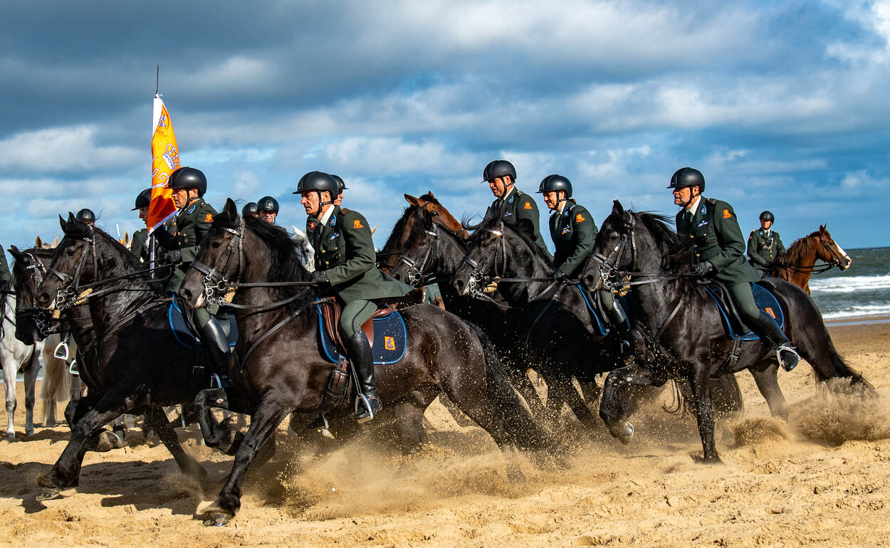 De jaarlijkse oefening van het Cavalerie Ere-escorte op de maandag voor Prinsjesdag is een spektakel om te zien, aldus vaste inzender Fred Warmer. Op het Scheveningse strand fotografeerde hij ruiters die meelopen in de koninklijke rijtoer. Daar laten ze hun paarden wennen aan het geluid van munitie en muziek. Ook publiek langs de kant wordt opgeroepen zoveel mogelijk lawaai te maken. Dit moet voorkomen dat ze tijdens Prinsjesdag onrustig worden en op hol slaan. Het Cavalerie Ere-escorte begeleidt het koninklijke gezelschap elk jaar in de Glazen Koets. Ook leden van het Korps Nationale Reserve maken er deel van uit.