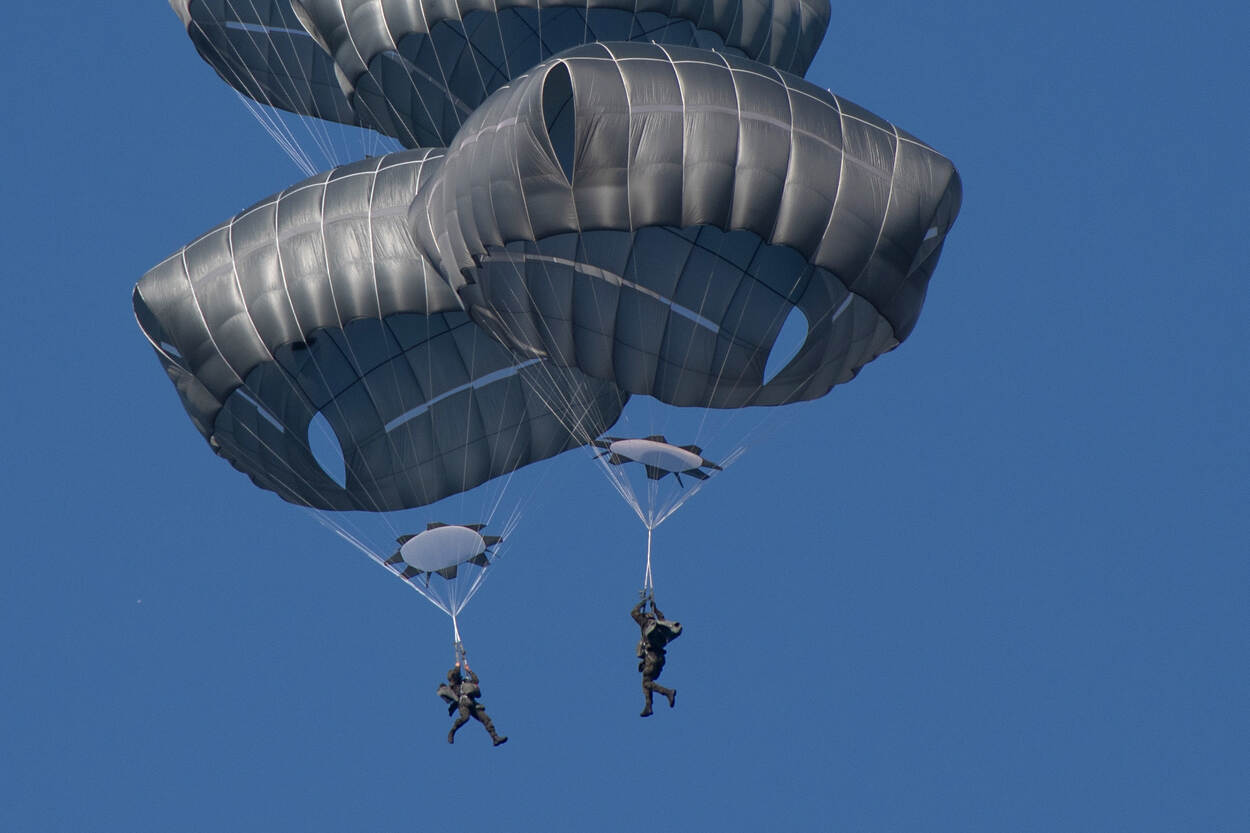 Aan aandacht voor Falcon Leap geen gebrek, de afgelopen weken. Toch nog een nabrander over de airborne-luchtlandingsoefening, simpel omdat-ie zo fraai is. Eén van de meer dan vijfhonderd foto’s van Arie van Hensbergen, die ‒ zoals het een ware liefhebber betaamt ‒ overuren draaide bij de Ginkelse hei. Met als beloning een vermelding in deze rubriek.