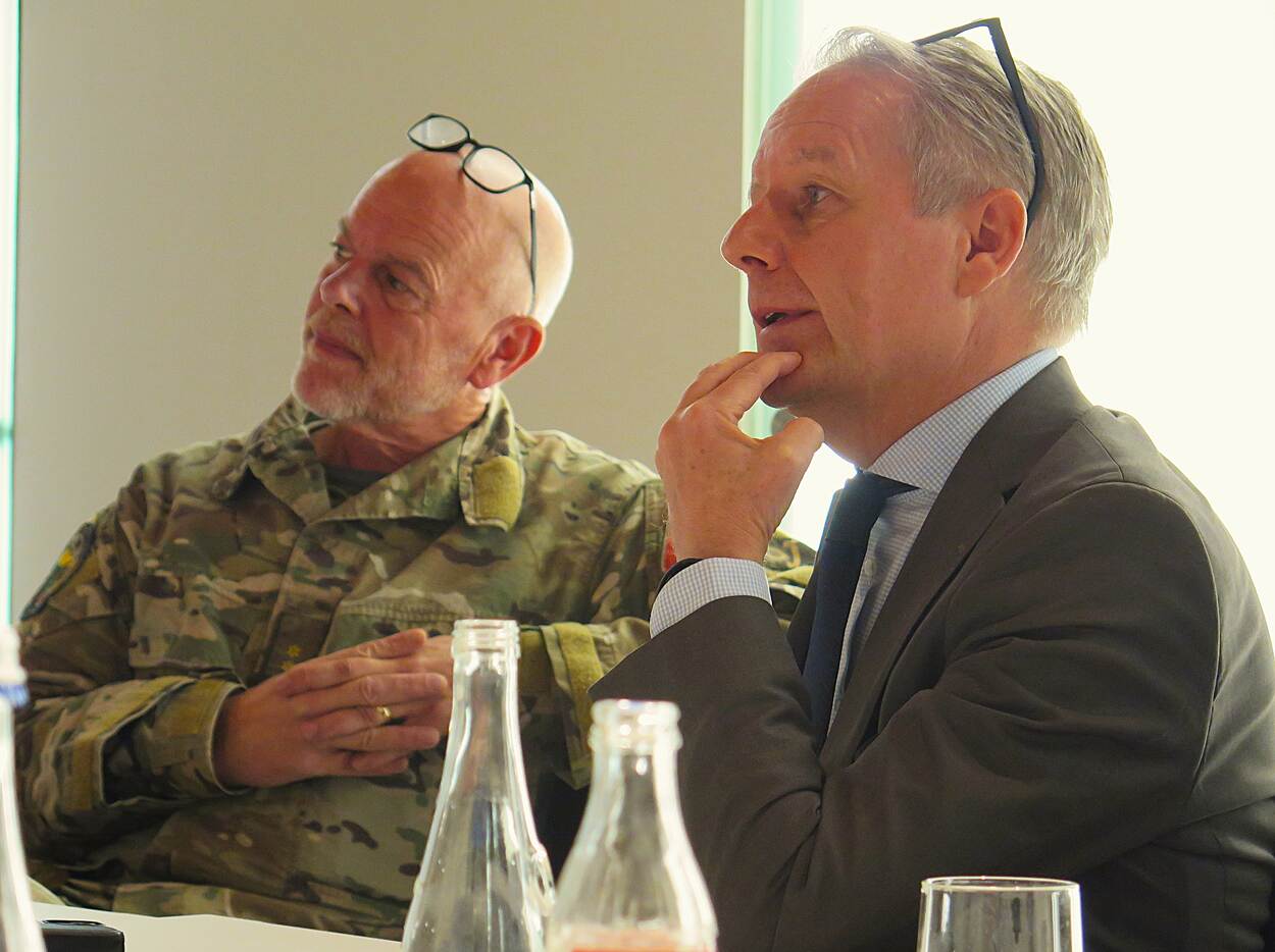 Maar hoe breng je die weerbaarheid, met na de Tweede Wereldoorlog zo’n verschillende geschiedenis, in Nederland voor het voetlicht? De ambassadeur: “Dat is lastig. Hier word je erdoor beïnvloed. In onze kelder staan bijvoorbeeld wel noodpakketten en watervoorraden, voor het geval dat… Je moet dat uit het lacherige krijgen.”