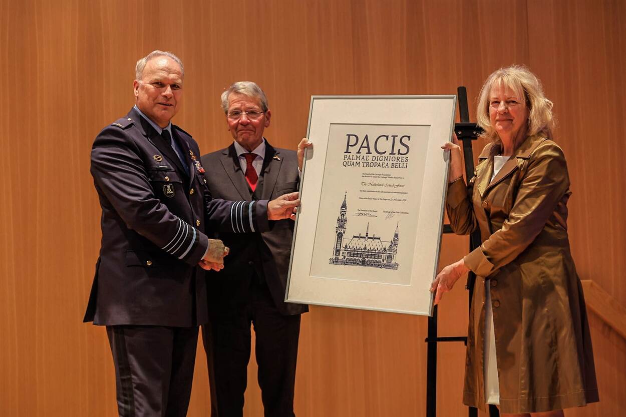 De krijgsmacht krijgt de Carnegie Wateler Vredesprijs voor alle inzetten in meer dan tachtig vredesoperaties ter wereld. “De Nederlandse krijgsmacht speelt een essentiële rol in de bevordering van internationale vrede en veiligheid”, stelt juryvoorzitter Elisabeth Wesseling-van Gent. “Met deze prijs willen wij alle Nederlandse militairen danken, die dagelijks hun eigen grenzen verleggen om de grenzen van anderen te beschermen. De leden van de krijgsmacht zetten hun eigen levens in om wereldwijd democratie en vrede te behouden of op te bouwen.”