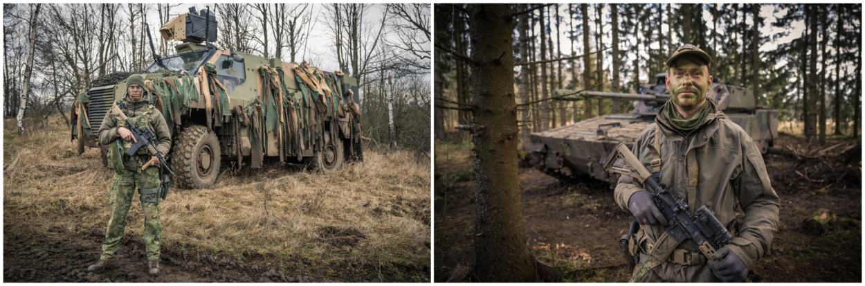 Naast het ruige terrein, zijn volgens voertuigcommandant CV90 sergeant Roel (35) de weersomstandigheden verzwarend. “Bij de voertuigen hebben de optieken bij slecht weer veel minder werking. Als het mistig is heb je niet heel veel aan warmtebeelden.” Maar naast de machines zijn er ook nog de eenheden, vertelt hij in het kampje midden in het bos. Sneeuw, hagel, wind en regen zijn hier geen uitzondering. “De jongens liggen buiten: ijskoud en zeiknat. Er zijn ook acties waarbij ze statisch zijn, maar wel inzetbaar moeten blijven. Die extra uitdagingen zorgen ervoor dat het uitvoeren van standaarddrills nog lastiger is.”