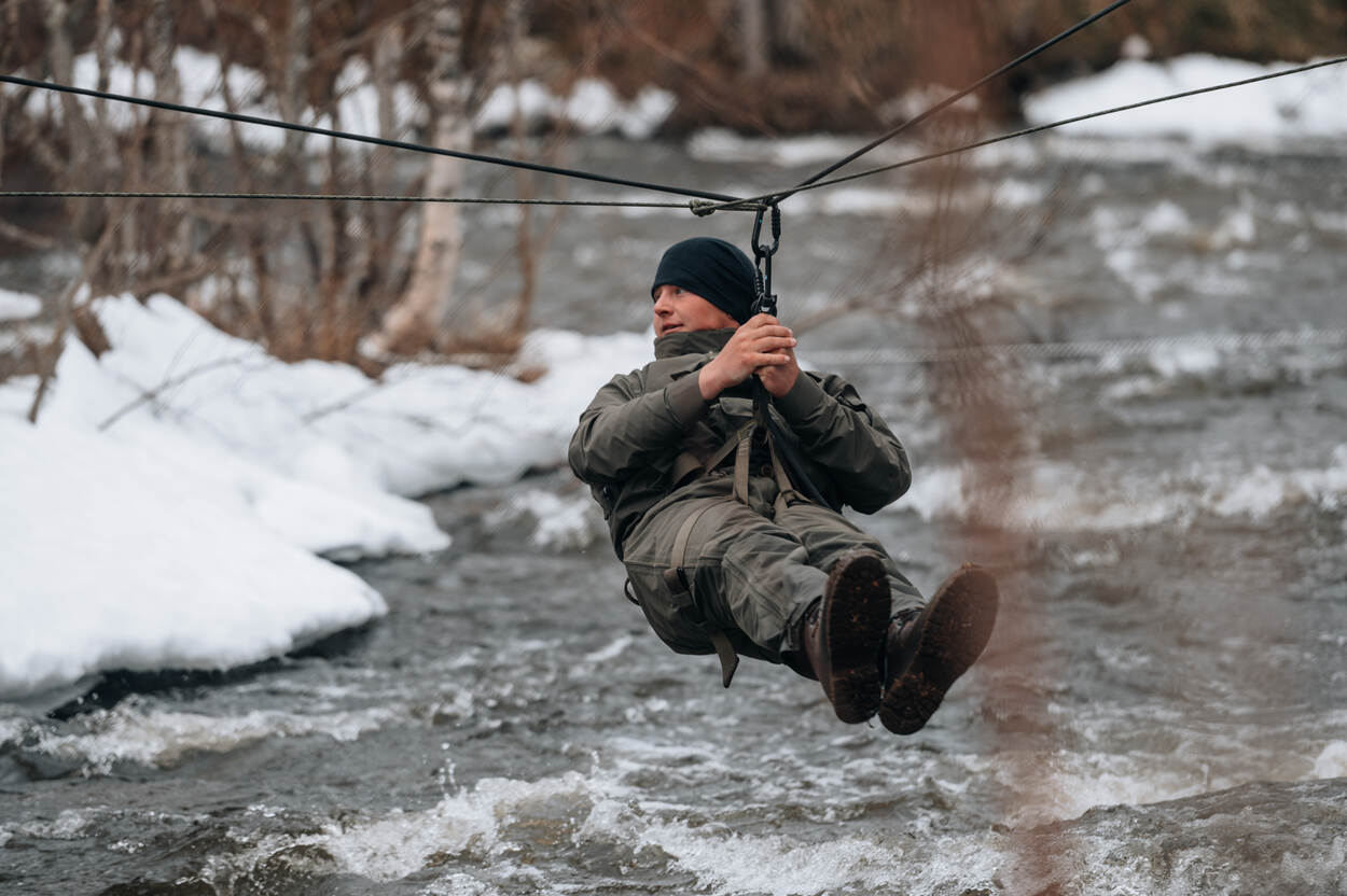 Marinier-1 Thomas is goed te spreken over de training in Bardufoss. “In het begin viel met name het marsen me zwaar, maar dat trok snel bij.” Rivercrossings, abseilen, survivallen; het gaat hem goed af. Het is met name de lengte van sommige oefeningen die de twintigjarige marinier uitdagen. “Zeker de marsen, die kunnen soms wel vijf tot acht uur duren. Dan ben je er op een gegeven moment echt wel klaar mee. Het duurt en het duurt maar, de tas begint te zeuren, je voeten gaan pijn doen; dat is even een stuk waar je je overheen moet zetten.”