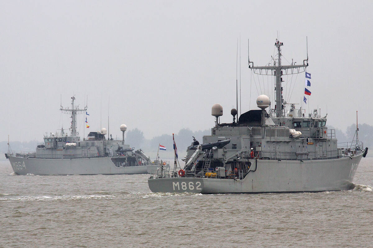Onze dappere Harry Hulshof verruilde vorige week zijn woonplaats Veendam voor het op die dag druilerige en grijze Delfzijl. “Op Pinksteren lijkt de haven van Delfzijl wel klein Den Helder”, omschrijft hij. “Sinds jaar en dag is de Koninklijke Marine er aanwezig en krijgen bezoekers de gelegenheid om een kijkje te nemen op de schepen.” Dit jaar was het de beurt aan de mijnbestrijdingsvaartuigen Zr.Ms. Schiedam (M860), Zr.Ms. Zierikzee (M862) en Zr.Ms. Willemstad (M864). Die laatste twee staan op de foto. De schepen werden vergezeld door het duikvaartuig Argus en het onderzoeksschip N-Sea GEOSEA.