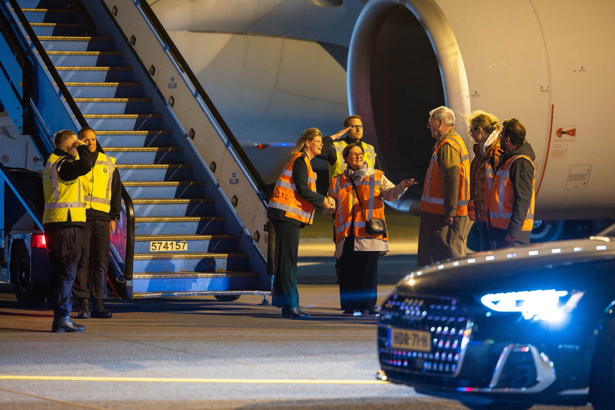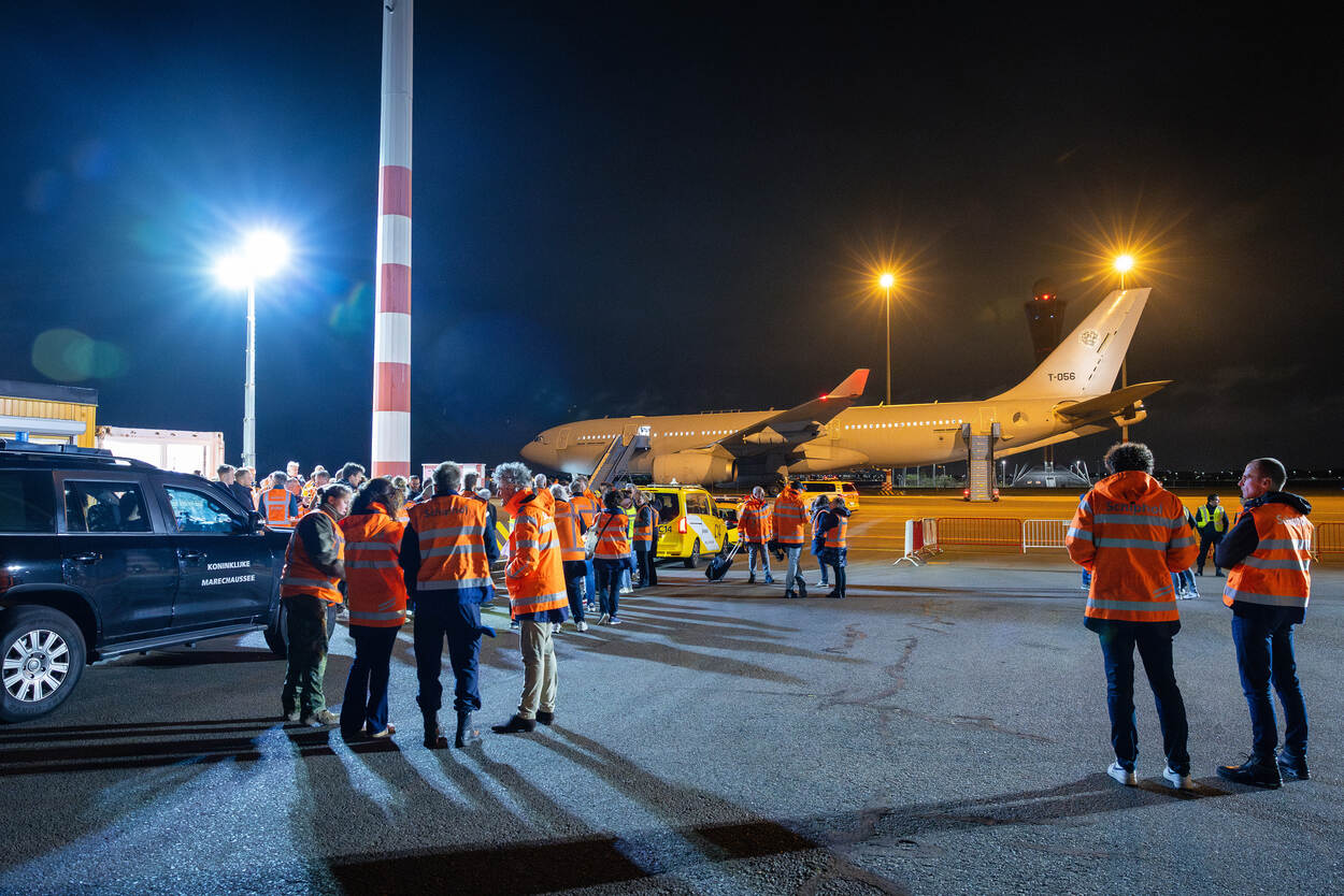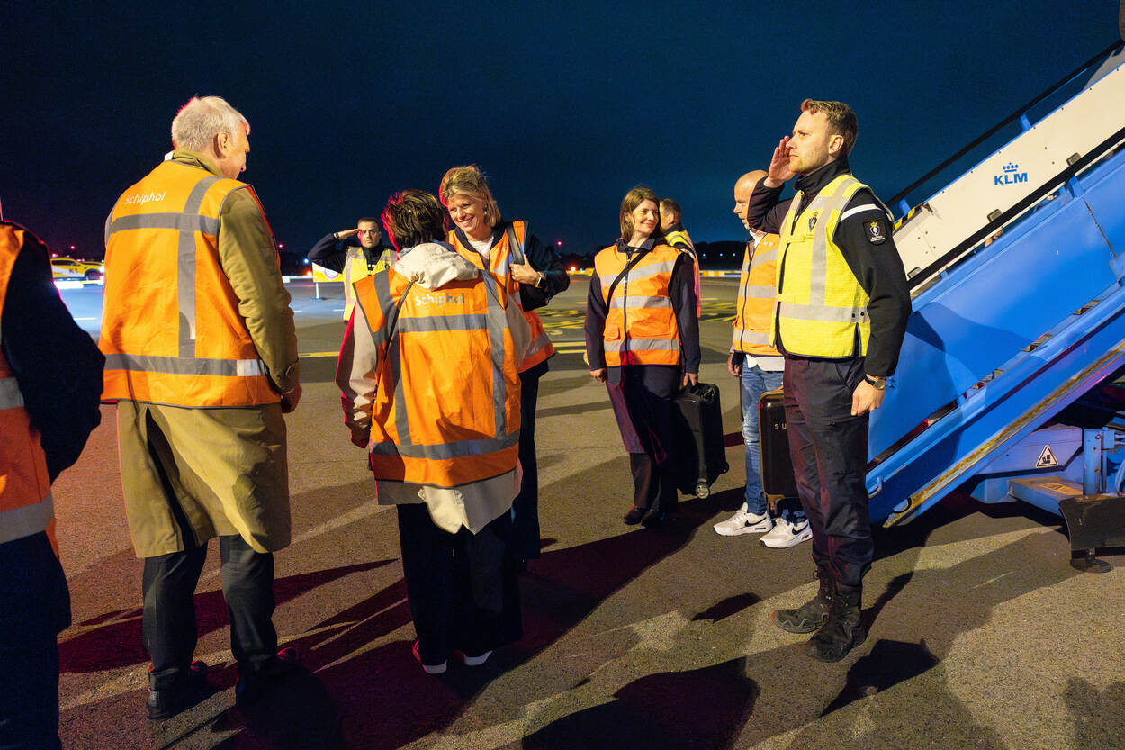 De figuranten die dienstdoen als hoogwaardigheidsbekleders en hun entourage, zijn niet vanaf Vliegbasis Eindhoven meegevlogen. Zij stappen daarom op Schiphol aan boord, voordat het oefenen van het ceremonieel en het vervoer en de beveiliging kan starten. De figuranten betreden de start- en landingsbaan zodra de A330 MRTT tot stilstand is gekomen, de wielblokken zijn geplaatst en de vliegtuigtrap tegen het toestel is gezet. Veiligheid staat voorop, dus alles gebeurt deze nacht onder strikte begeleiding van de grondmedewerkers van Schiphol. Er wordt immers ook op dit nachtelijke uur nog gevlogen. Dan zwaait de vliegtuigdeur open. De figuranten lopen de vliegtuigtrap op en gaan aan boord. De vliegtuigdeur sluit zich weer. De oefening kan nu echt beginnen.