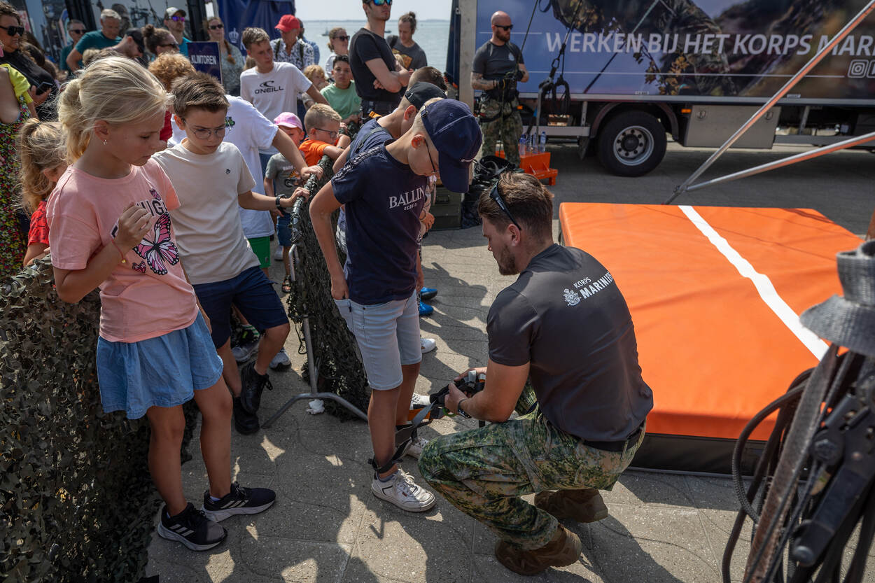 “Het onbekende is wat mensen naar onze stand trekt”, weet adjudant Marcel van de Brigade Zeeland/West-Brabant. “Veel mensen leggen het verband tussen de marechaussee en de paspoortcontrole bij de grens. Maar we doen veel meer waar de gemiddelde burger weinig van af weet. Zo’n negentig procent van ons werk is zogezegd ‘burgerwerk’. Zo draait de KMar op zowel Schiphol als andere luchthavens een volledige politiedienst. En doet de Hoog Risico Beveiliging veel aan objectbeveiliging.”