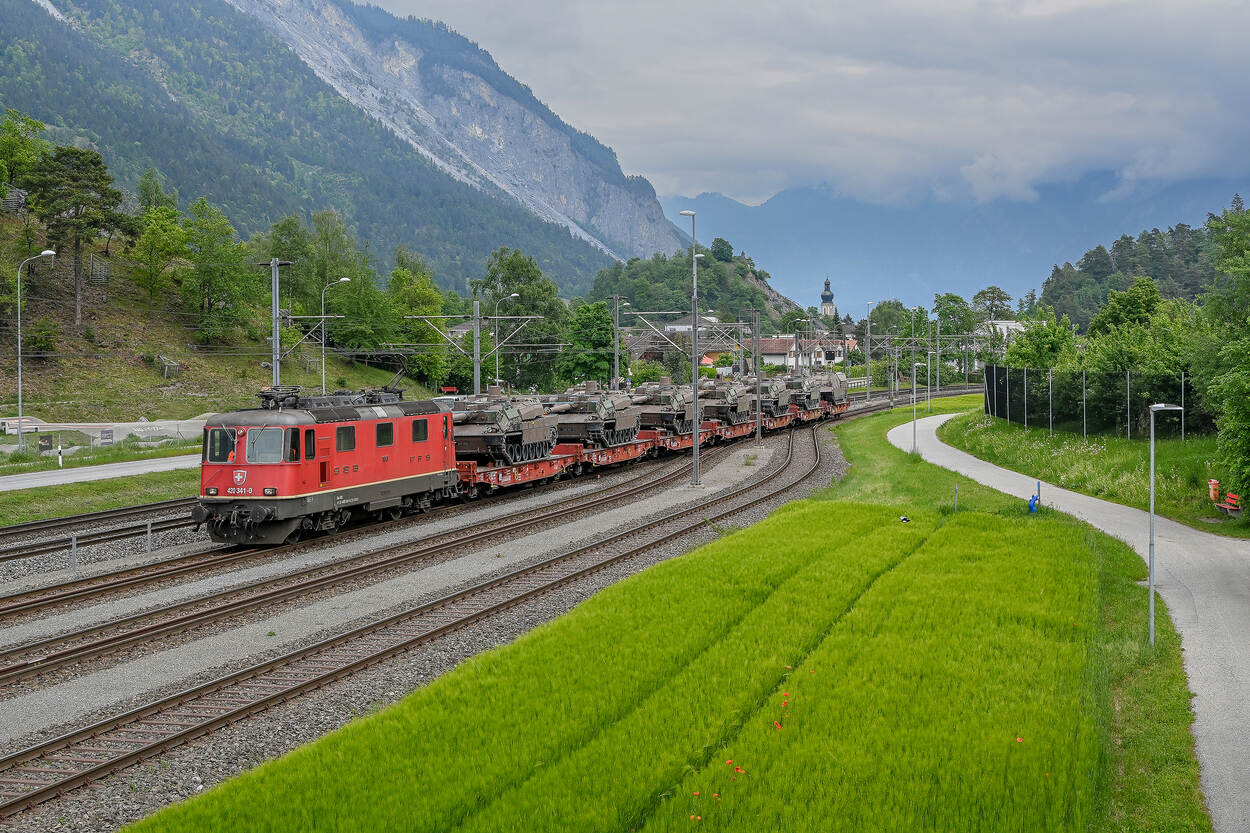 Dat is al een reportage waard, maar Sander Broerse van het eerdergenoemde Railhobby spant deze maand de kroon. Hij ging op reportage in Zwitserland, waar een gezamenlijke oefening van het Zwitserse en Franse leger plaats had. Dat leverde in een typisch Zwitsers landschap een aantal prachtige foto’s op van Leclerc-gevechtstanks op Mobile Rampenwagens SLNPS, getrokken door een SBB Cargo 420 341. Ren naar de plaatselijke kiosk voor deze zeer lezenswaardige reportage in het juli/augustusnummer (485) voor meer tekst en foto’s.
