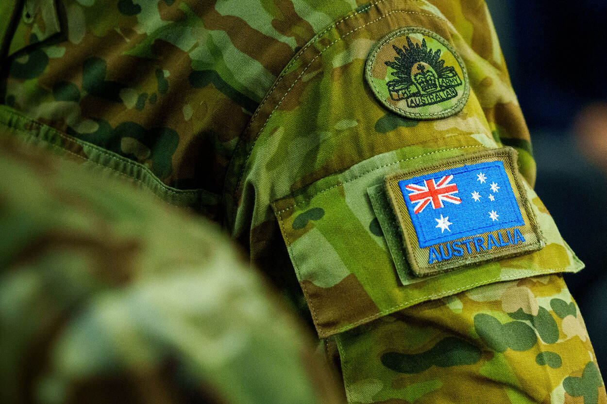 Een mouw van een militair uniform met daarop de vlag van Australië.