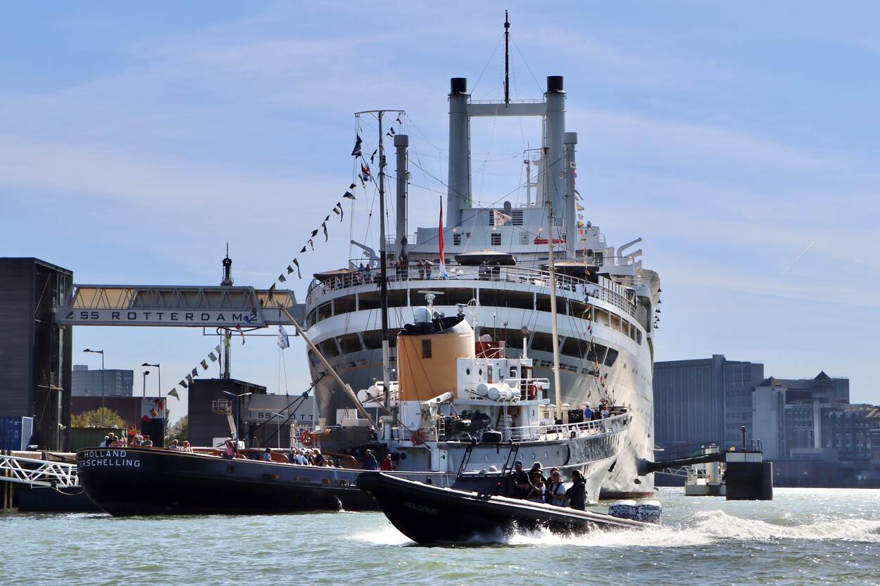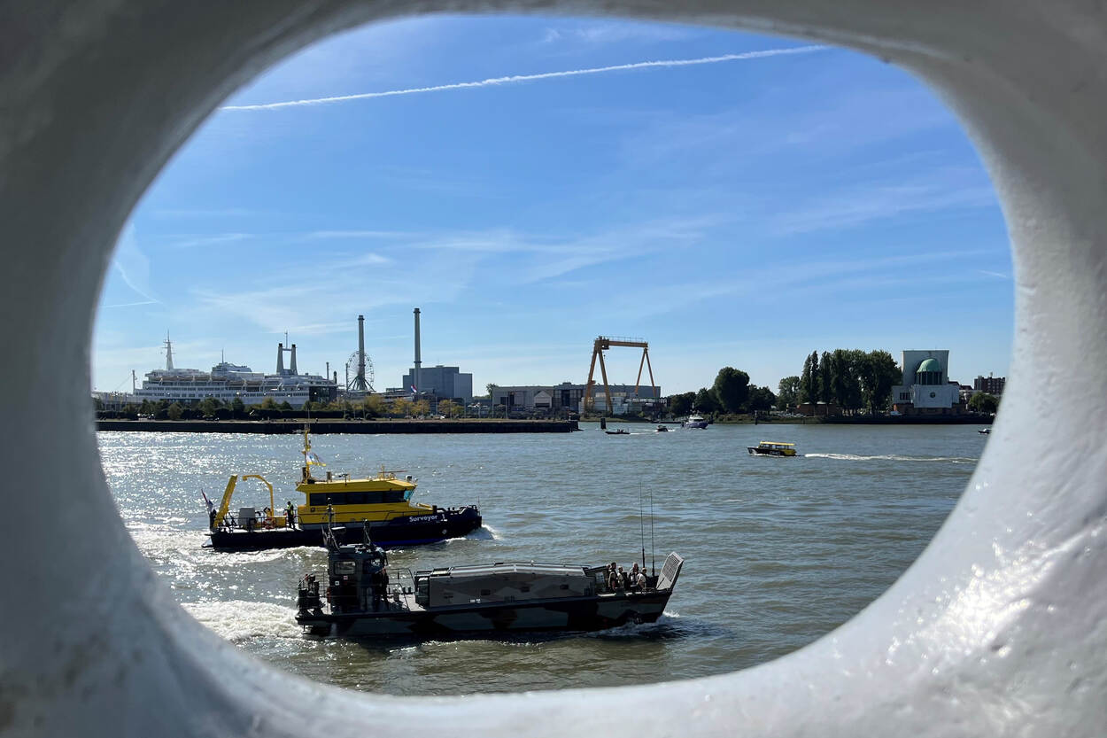 Ook defensiecollega Arthur Driesen, inmiddels opgeklommen tot luitenant-kolonel, was erbij in Rotterdam. “Mooi weer, erg leuk en gastvrij opgezet”, zo weet hij te melden. Arthur stuurde een viertal foto’s in waarvan we er twee hebben uitgekozen. In dit geval zien we een snelle onderscheppingsboot langs de SS Rotterdam scheren. Op foto twee heeft hij zijn creativiteit de vrije loop gelaten. Daarop zien we onder andere een landingsvaartuig. Dat het volgens hem een leuke dag voor jong en oud was, is voor ons inderdaad duidelijk!