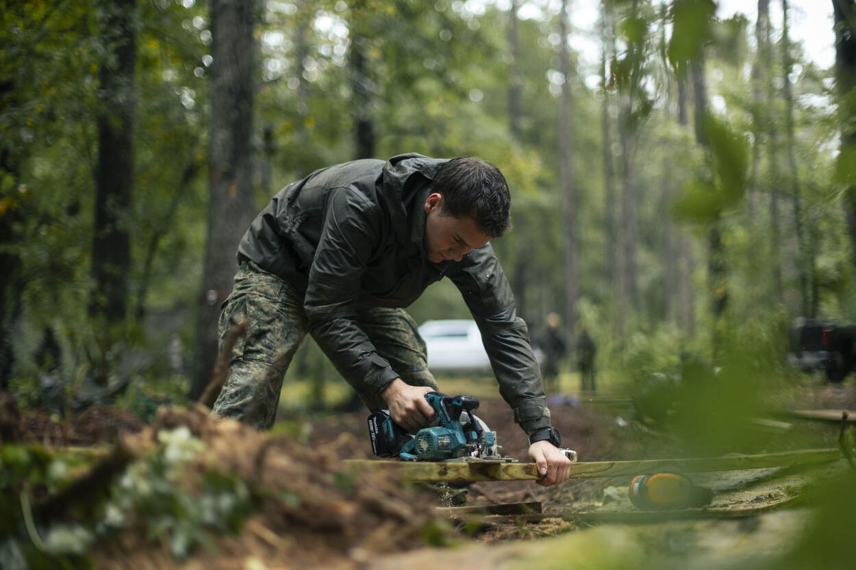 De ironie ziet soldaat-2 Jetze er ook wel van in: voordat hij zich aanmeldde voor het Dienjaar Defensie, was hij jarenlang werkzaam als hovenier. Nu sleept hij met takken en bladeren in de dichte bossen van de Amerikaanse staat Virginia. Geen geweer in z’n handen, maar een schep. “Ja, ik kom er blijkbaar niet vanaf”, zegt hij met een grote glimlach.