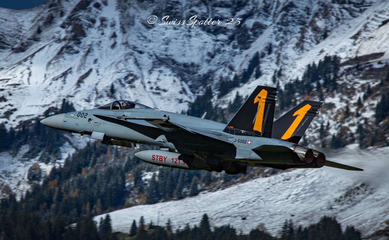 Eindelijk was er weer eens een Open Dag op Militärflugplatz Meiringen in de buurt van Bern, Zwitserland. Dat weten we door de fantastische foto’s die Charles Jequier, in eigen land beter bekend als SwissSpotter, ons aanleverde. Hij legde het vertrek en aankomst van twee F/A-18 Hornets vast en van zo’n toestel in volle vlucht.