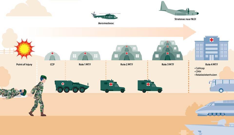 Het medische systeem heeft volgens kolonel Meerhoff de functie van een veredelde wachtkamer. Gewonden die achter de linies zijn gestabiliseerd en niet in levensgevaar verkeren, worden opgevangen in de CSU in afwachting van transport naar Nederland. Zodoende maken ze ruimte in het Role 2 of 3 ziekenhuis, waaruit ze net zijn ontslagen. Opgetuigd in de buurt van een treinstation of luchthaven kunnen de gewonden gemakkelijk vanuit de CSU worden overgebracht naar een gereedstaand transportmiddel.