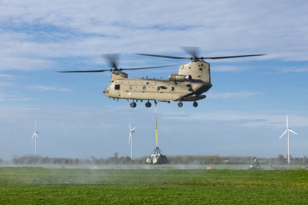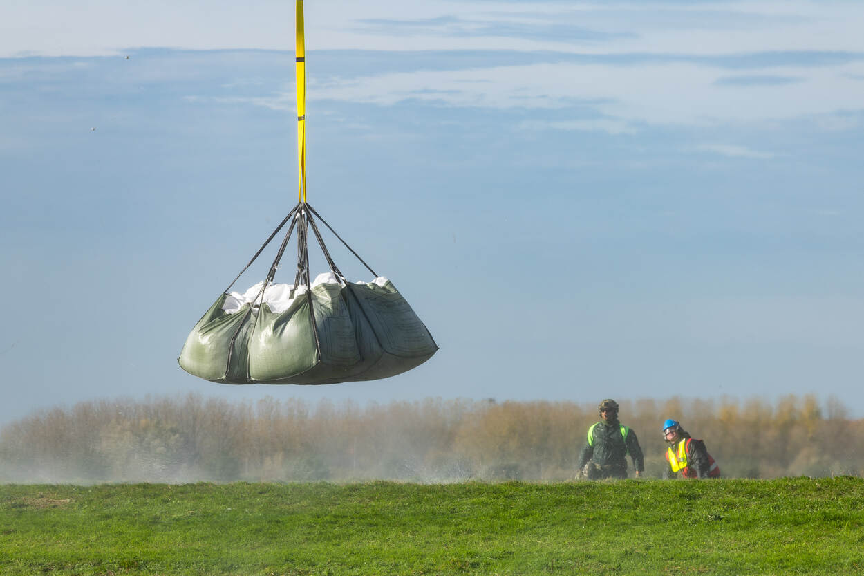 Aan de boorden van het Amsterdam-Rijnkanaal, ter hoogte van het Utrechtse Schalkwijk, cirkelt op de eerste woensdag van november plots een helikopter boven flink wat hectaren weiland. Het blijkt te gaan om een transporthelikopter van Defensie. Deze Chinook levert luchtsteun en pendelt twee dagen lang tussen het ‘pick-up point’ en de ‘drop-off locatie’ met zogenaamde ‘big bags’ en ‘block bags’. Dit vanwege een doorgebroken dijk. Die is bezweken door aanhoudend noodweer met veel neerslag. Snelle actie vereist dus.