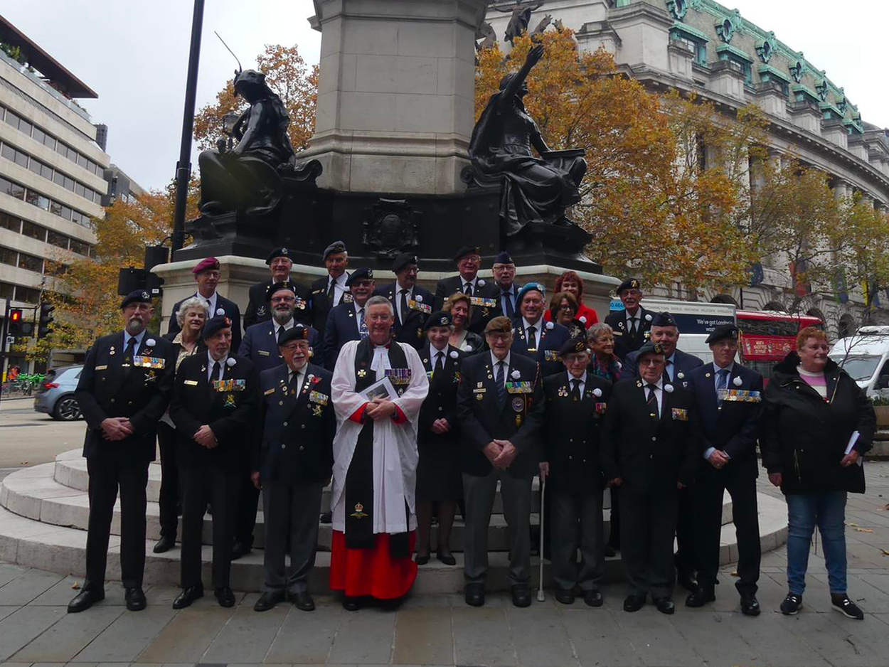 In die kerk dient trouwens een voor velen bekende ‘pater’: padre Royal Air Force Asley Mitchell, King's Honorary Chaplain (KHC). Hij diende in 2009 met Nederlandse militairen in Afghanistan. Asley poseerde met een groep Nederlandse veteranen bij het Crimean War Memorial op Waterloo Place in Londen (foto rechts).