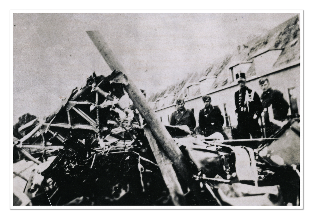 Het Britse toestel kan niet ontkomen en stort neer, net buiten de bebouwing van Hamont. Alle bemanningsleden komen daarbij om. Het luchtgevecht heeft ook gevolgen in Noord-Brabant. Enkele brokstukken van het toestel komen neer op een voertuig van de Duitse Wehrmacht in Soerendonk.