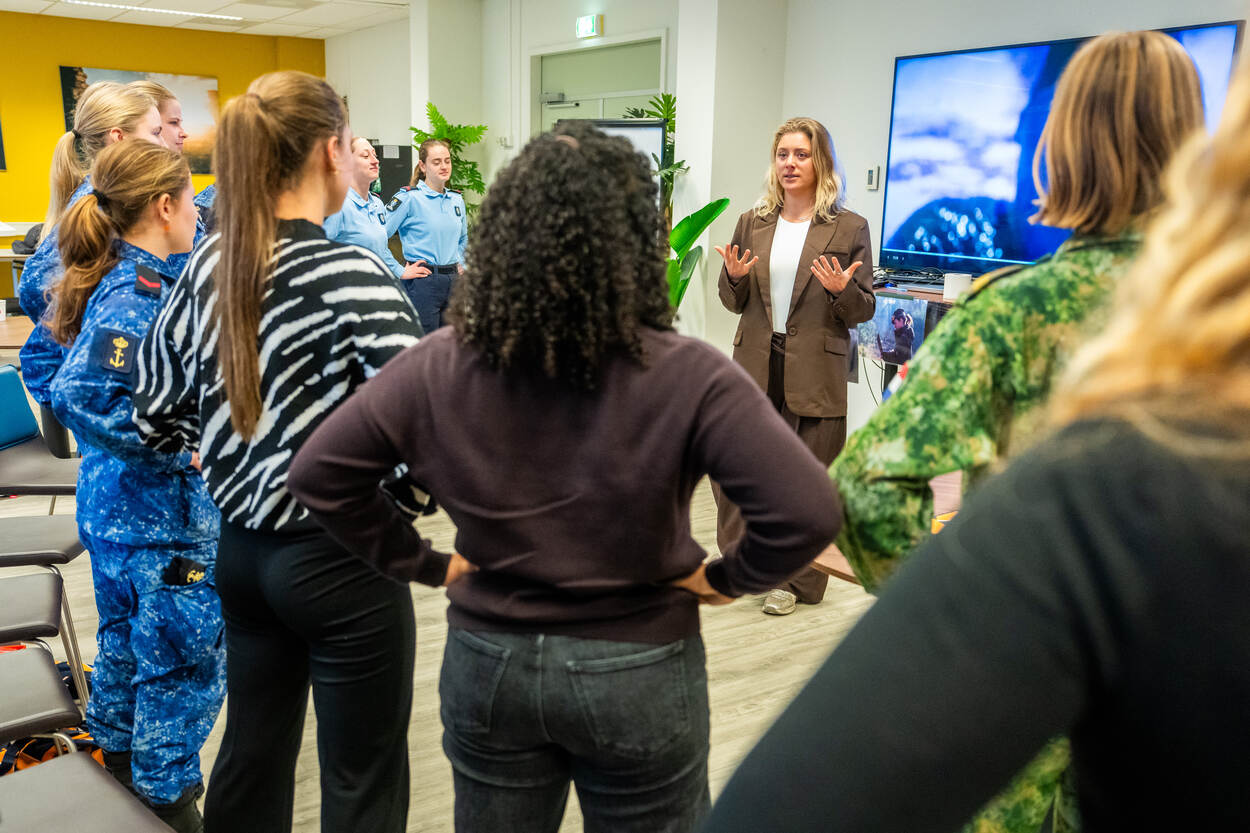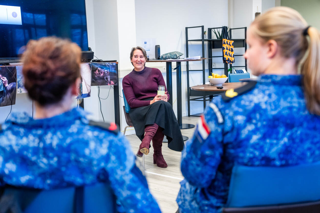 Bij Defensie zijn uniformiteit en kameraadschap belangrijk. Dat maakt het soms moeilijk, maar Sandra roept de meiden op om het toch te zeggen als ze een andere visie hebben. “Als vrouw val je op, er wordt op je gelet. Maak daar gebruik van. Help mannen ook om zich kwetsbaar op te stellen. Het getuigt van kracht om je twijfels uit te spreken. Wat de een niet weet, kan de ander aanvullen. Dat maakt een team sterker.”