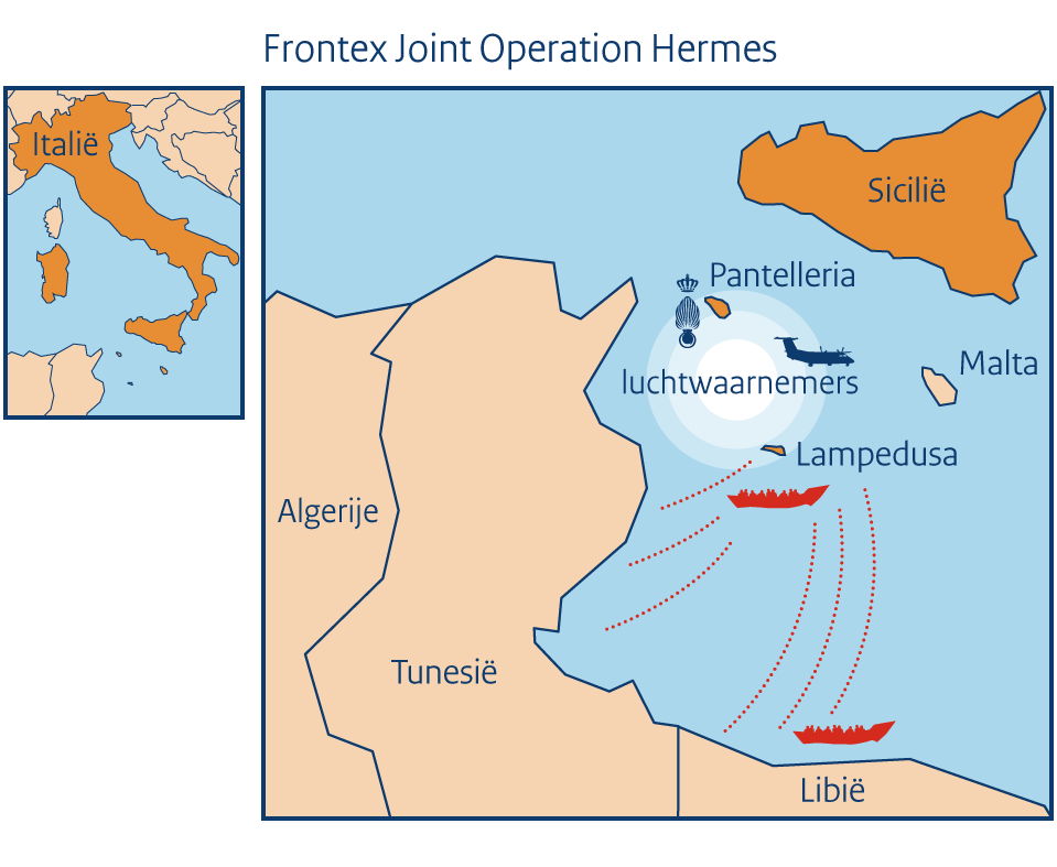 Luchtwaarnemers van de Marechaussee zijn de hele maand september voor het Europees agentschap Frontex gestationeerd op het Italiaanse eiland Pantelleria. Voor de operatie Joint Operation Hermes 2014, die de KMar voor Nederland leidt, brengen zij de migratiestroom vanuit Noord-Afrika in kaart. KMarMagazine sprak met hoofd Voorlichting Frontex Izabella Cooper over de operatie, de Nederlandse inzet en de tot nu toe behaalde resultaten.