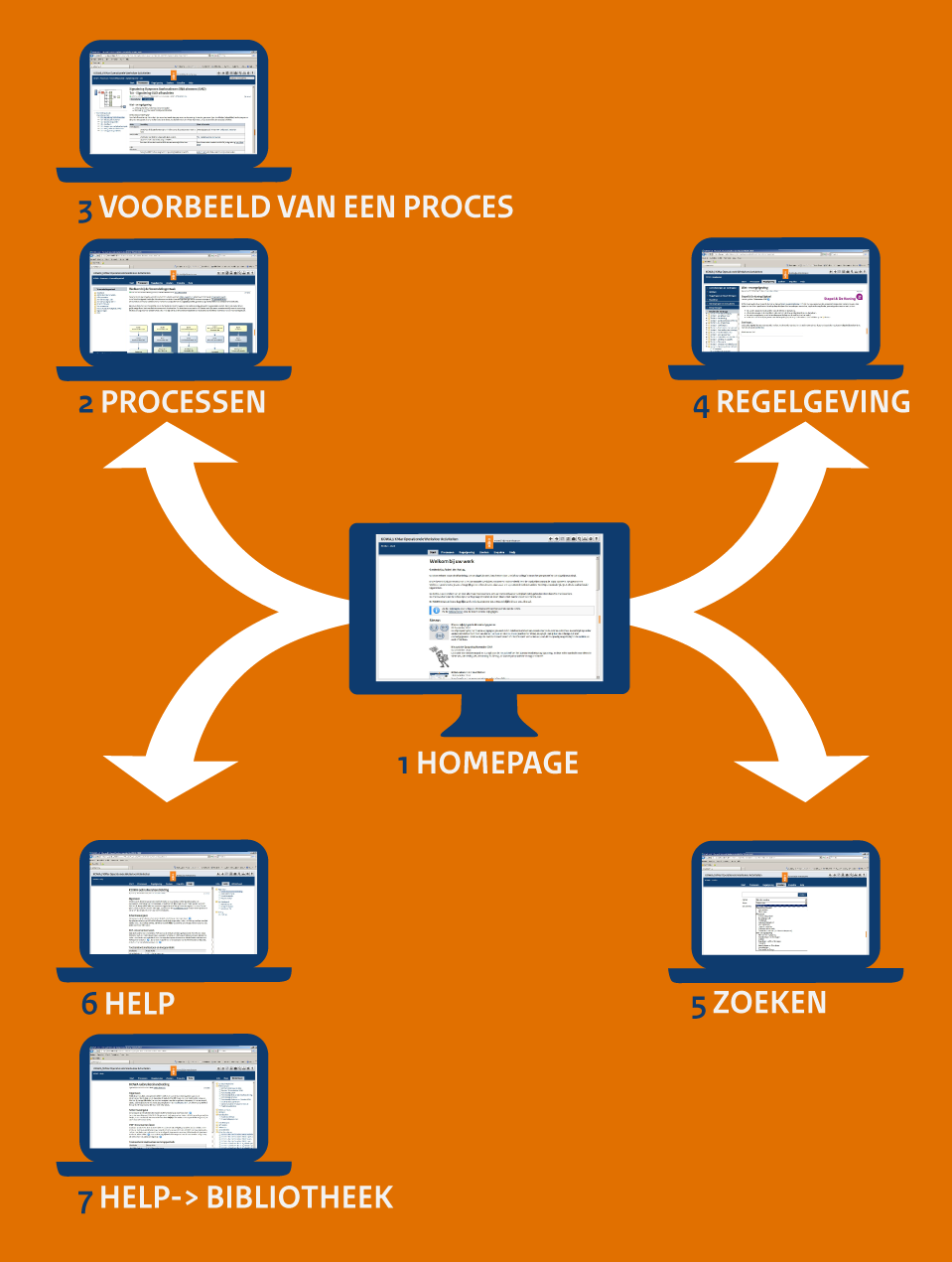 In onderstaande afbeelding ziet u in het klein verschillende pagina's voorzien van een nummer. De nummers verwijzen naar vergrote afbeeldingen, die daaronder staan. Bij die afbeeldingen staat een verdere uitleg.