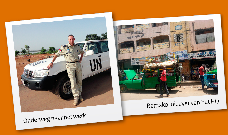 "Ik ben als een van de Individual Police Officers (IPO's) uitgezonden naar Mali. Behalve de militaire bijdrage levert Nederland namelijk ook politiecapaciteit aan de VN-vredesmissie MINUSMA (United Nations Multidimensional Integrated Stabilisation Mission). Ik werk voor de United Nations Police (UNPOL) binnen de Staf van MINUSMA. Ik ben 1 van de IPO's die op een strategische functie zit; uitgeleend door UNPOL aan de Staf van de Special Representative of the Secretary-General en tewerkgesteld als analist bij het Joint Mission Analysis Centre (JMAC).