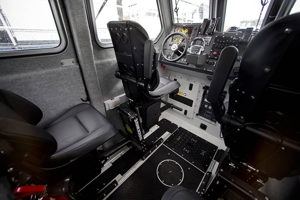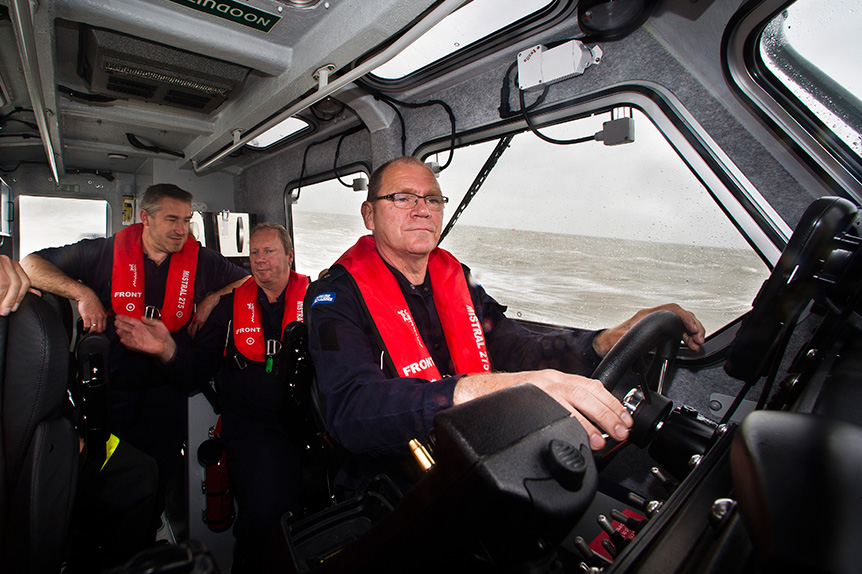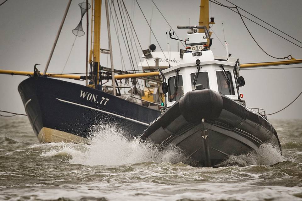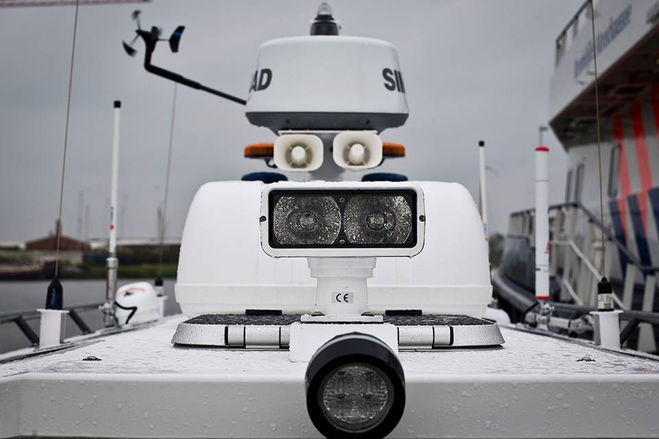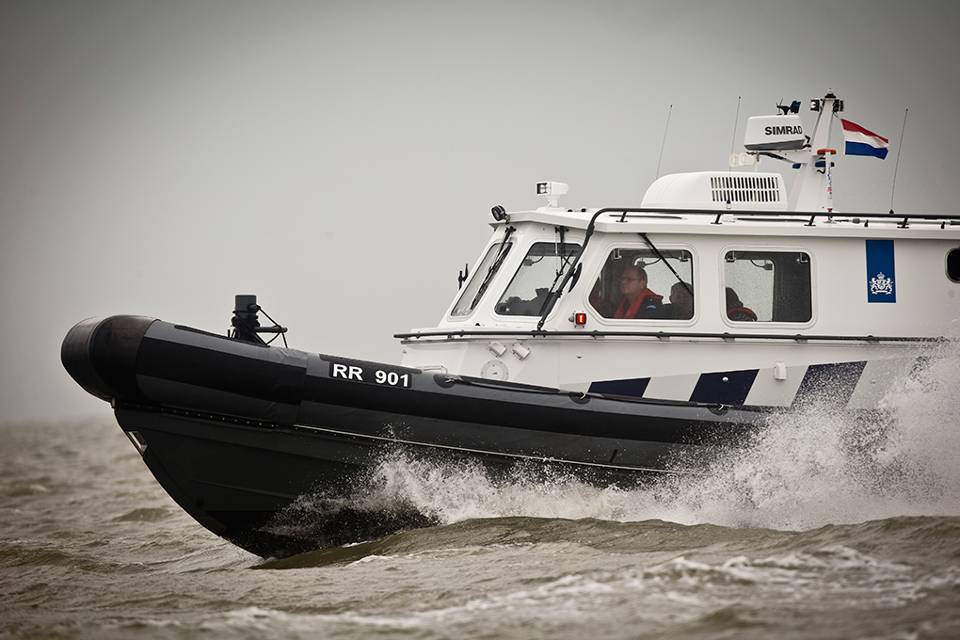 De lucht is loodgrijs als de 12 meter lange RR901 de haven van het pittoreske Harlingen achter zich laat voor een tochtje buitengaats. Zware wolken jagen door de lucht, af en toe regent het en er staat een stevig windje, waardoor golven van een halve meter ontstaan. Maar daar heb je op de nieuwe FRISC weinig last van. De reden hiervoor maakt het vaartuig uniek. Het is namelijk in samenspraak met de leverancier en de Defensie Materieel Organisatie voorzien van een stuurhut, waarin ook nog eens op beeldschermen radar en kaarten kunnen worden geprojecteerd.