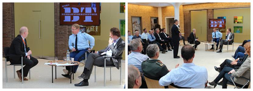 De Bedrijfsvoeringstoer is een reeks van inspirerende bijeenkomsten op initiatief van de Hoofddirectie Bedrijfsvoering. Bij deze sessies worden in een open setting, met publiek als toehoorders en vraagstellers, uiteenlopende bedrijfsvoeringsonderwerpen besproken. Woensdagmiddag 10 juni was ik te gast bij de vierde editie, die werd georganiseerd op het Haagse Plein-Kalvermarktcomplex. Thema's die aan de orde kwamen: informatiegestuurd optreden en de impact hiervan op onze bedrijfsvoering, de bijzondere plek van de Koninklijke Marechaussee in de besturing van Defensie en de ketensamenwerking. Erg leuk om op deze manier met een groot aantal defensiecollega's in gesprek te komen. Goed initiatief!