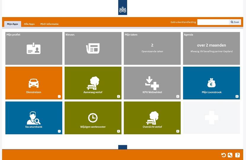 functionaliteiten, zoals verlof aanvragen of een dienstreis. De achterliggende