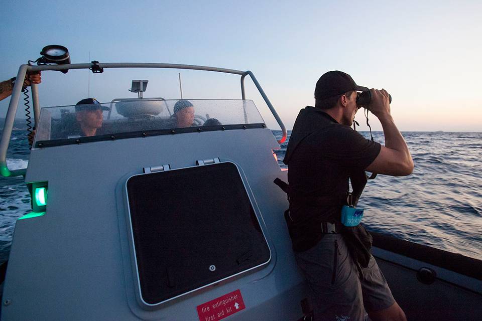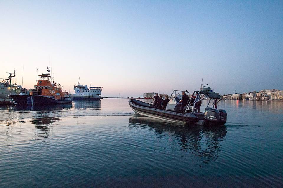 Met volle kracht scheert een Rigid Hull Inflatable Boat (RHIB) van de Koninklijke Marechaussee over de Griekse zee nabij het eiland Chios. Bemanningsleden turen door een verrekijker over het water. De schittering van de zon maakt het lastig het gebied te scannen. Ergens ligt een bootje met migranten, zo blijkt uit een melding. Dan verschijnen er plots oranje stippen aan de horizon.