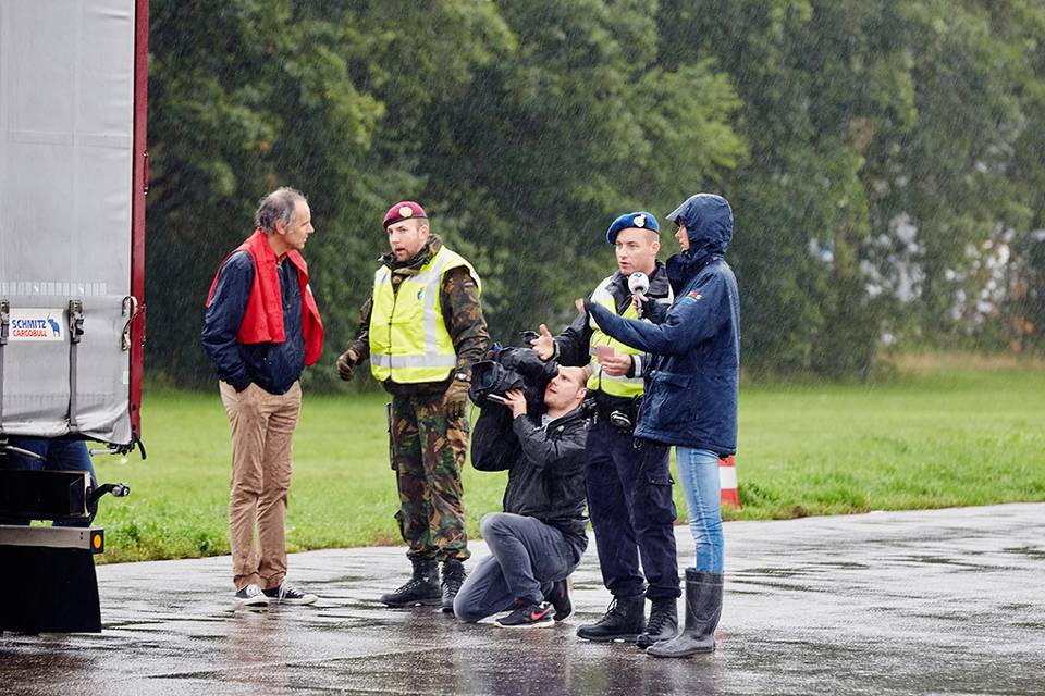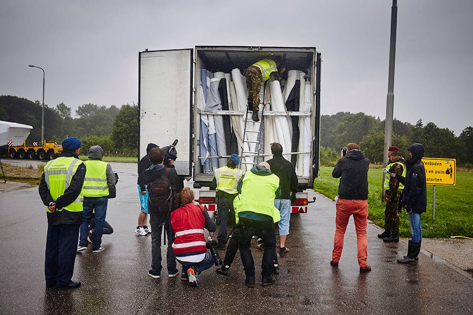 NOS, RTL Nieuws, ANP, Hart van Nederland, De Telegraaf: journalisten en fotografen verdrongen zich bij de vrachtwagens voor mooie shots. En dat viel op zo’n druilerige dag niet bepaald mee.