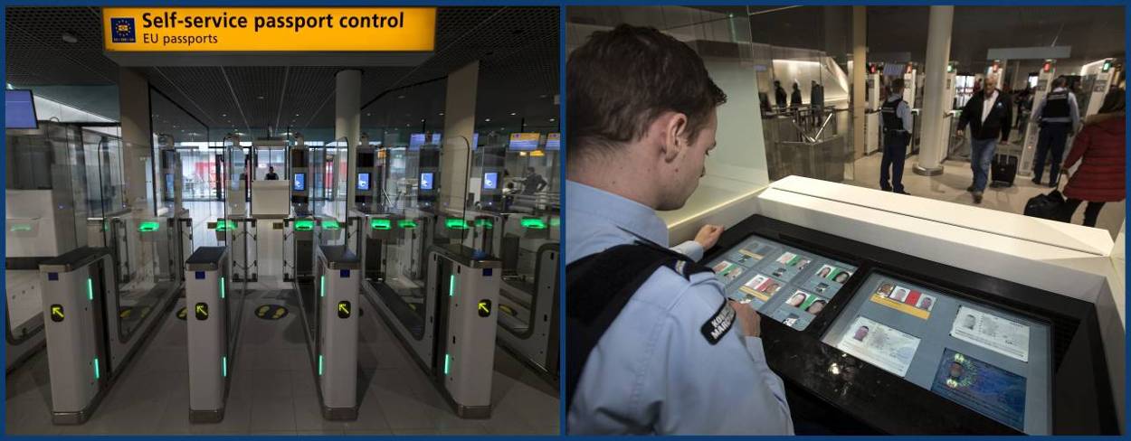 De poortjes drinken geen koffie, worden nooit moe en presteren altijd op hetzelfde niveau. En als reizigers de automatische self-service passport control (SSPC) op de juiste manier gebruiken, kunnen ongeveer 3 personen per minuut de grens passeren. Dat klinkt de luchthaven, de Marechaussee en de reiziger als muziek in de oren. Klantvriendelijkheid, veiligheid en comfort. In 2012 startte de Marechaussee in het kader van het programma Vernieuwing Grensmanagement met de self-service passport control. Het blijkt een succes. Vanaf medio 2016 zal het aantal poortjes in aantal worden verdubbeld naar 72 en kan de reiziger (minimaal 18 jaar, in bezit van Europees paspoort met chip, die reist naar of terugkomt uit een niet-Schengenland) overal op de luchthaven kiezen om gebruik te maken van de elektronische grenspassage.