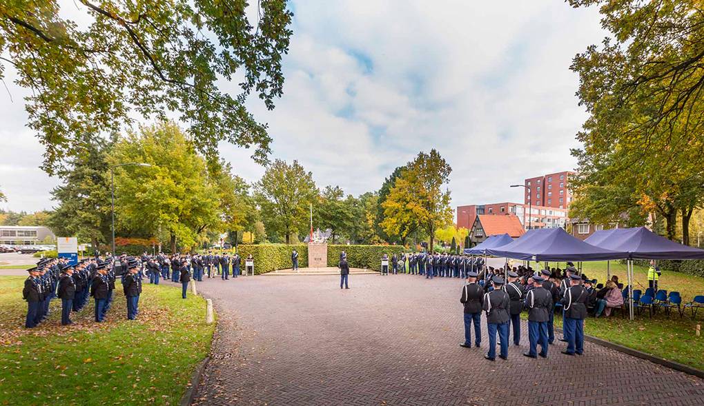 Benieuwd wie er allemaal aanwezig zijn bij de herdenking bij het Marechausseemonument? Klik op de oranje rondjes voor een uitleg.