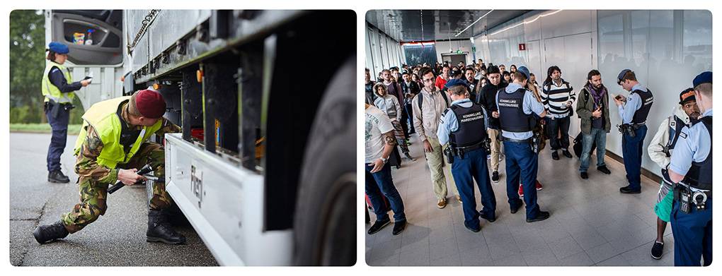 "De KMar is momenteel op veel fronten actief. Naast de reguliere grensbewaking spreken de MTV-controles het meest tot de verbeelding. Onlangs is besloten snelheidsbeperkende maatregelen in te voeren en de controles anders uit te voeren, zodat de collega's aan de grens een betere selectie kunnen maken van de voertuigen die ze willen controleren (zie ook pagina 2, red.). Maar ook op luchthavens (dedicated gatecontrol), aan de maritieme grens (bijvoorbeeld Hoek van Holland) en op het spoor is de KMar maximaal aanwezig en zijn de controlemomenten geïntensiveerd."