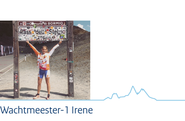 “Omdat ik al aardig wat kilometers in de benen heb, koos ik ervoor om de Stelvio hardlopend te bedwingen. Eenmaal aangekomen in Bormio schrok ik toch wel van wat ik zag. Het zag er namelijk wel erg steil uit. Ik dacht nog: 'Misschien had ik wat vaker een heuvel mee moeten pakken in Nederland'. Maar ook al had ik dat gedaan dan was het niets vergeleken met wat ik zag. Maar zoals het op mijn shirt stond gedrukt: 'Koninklijke Marechaussee, als het erop aan komt' liet ik me niet uit het veld slaan. Vol moed ging ik richting de start. De sfeer zat er goed in. We wensten elkaar succes en gingen van start.