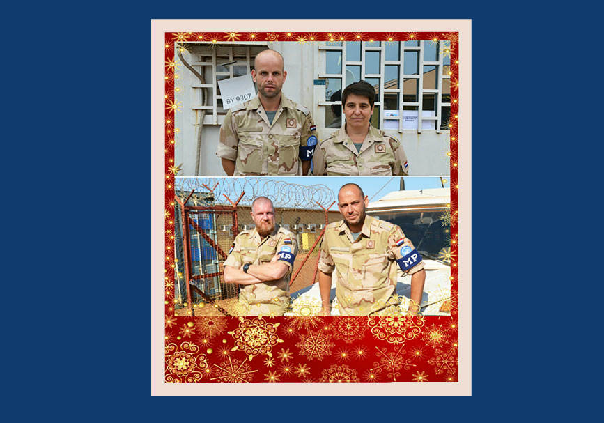 Het kerstseizoen in het buitenland doorbrengen is ook voor mij (Joop) af en toe onvermijdelijk. Het is de zesde keer in 34 jaar bij de KMar. Het valt reuze mee. Er zijn vast veel meer mensen die in deze periode niet thuis zijn. Ondanks dat ik weer mijn familie, vrienden, tradities en sfeer zal missen, blijf ik het toch apart vinden om juist dit soort dagen in het buitenland door te brengen en zo nóg een unieke herinnering er bij te krijgen."