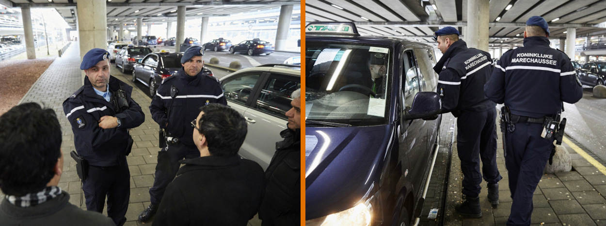 De Koninklijke Marechaussee ondersteunt buitengewoon opsporingsambtenaren (BOA's) van de gemeente Haarlemmermeer in de strijd tegen taxichauffeurs die hun diensten aanbieden buiten de daarvoor aangewezen plekken. Dat is in het kader van de openbare orde en veiligheid sinds 7 februari verboden. Wie toch klanten werft, riskeert een boete van 350 tot 1.500 euro. Bovendien krijgen overtreders direct een verblijfsontzegging. Ofwel een verbod waarmee ze minstens een maand niet op de luchthaven mogen komen. In de eerste twee weken na het verbod is tegen 17 personen proces-verbaal opgemaakt. Allemaal hebben ze een verblijfsontzegging gekregen. Een persoon ontving twee keer een proces-verbaal omdat hij de verblijfsontzegging negeerde.