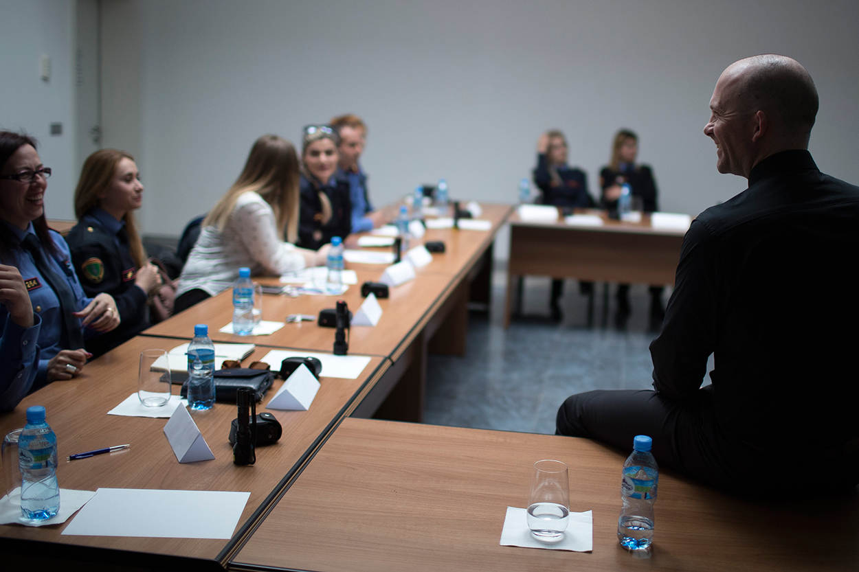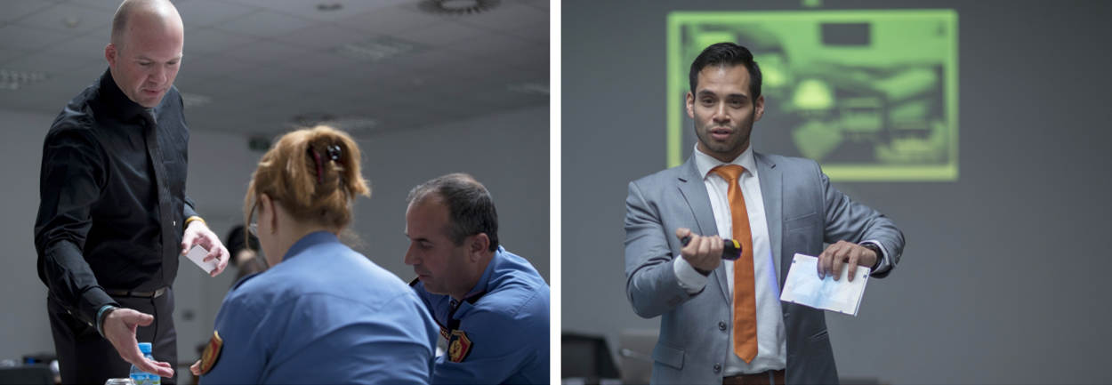 Trainers Slotboom en Schuurman: "Er zijn grote verschillen in ervaring tussen de studenten", vertelt officier Almir Doda. "Ik ben al 22 jaar bij de grensbewaking betrokken, de jongeren soms pas 2 jaar. Maar we hebben allemaal de afgelopen jaren diverse cursussen gehad." Schuurman is er dan ook aangenaam door verrast. "Het blijkt dat ook vanuit Duitsland en Oostenrijk hier lessen zijn gegeven over paspoort- en identiteitscontrole. Ze timmeren hier duidelijk hard aan de weg. Ze willen EU-proof worden."