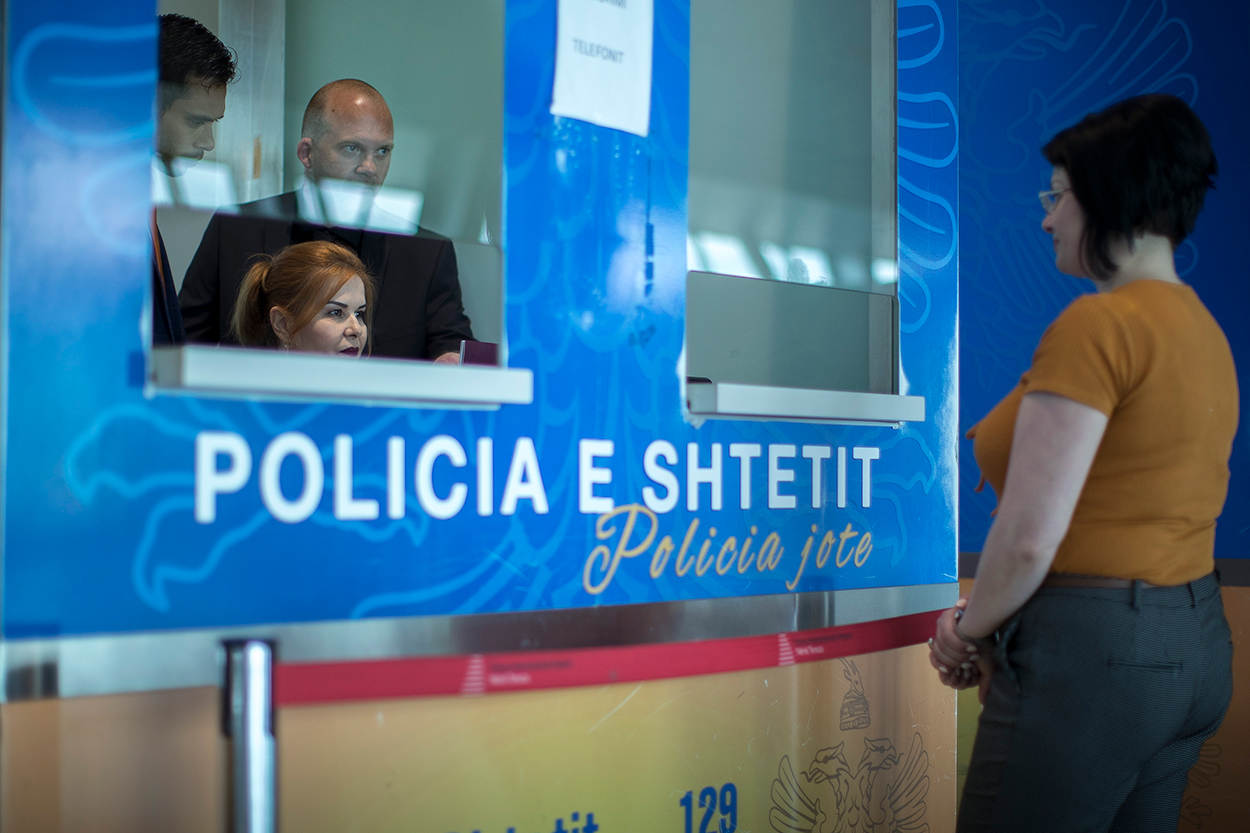 De ontvangst door de Policia Kufirite Emigracionit - de grenspolitie van Albanië - op het vliegveld van Tirana is vriendelijk maar resoluut. Officier Fabjola Poci controleert het paspoort grondig en stelt een aantal vragen over het reisdoel.
