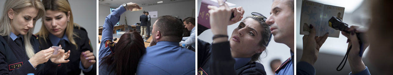 De cursisten van de staatspolitie (afdeling migratie en grensbewaking) en van de grondafhandeling kregen een veelheid aan theoretische en praktische voorbeelden mee van de beide marechaussees: druktechnieken, papiersoorten, watermerken en andere veiligheidskenmerken, maar ook in het her- en onderkennen van ongewenste vreemdelingen. "Alles is te koop op internet", laat Slotboom weten. "Google 'fake ID' maar eens: dan heb je zo een miljoen hits. Mensensmokkel is op dit moment een van de meest winstgevende criminele activiteiten. We hebben niet alleen te maken met vervalste paspoorten en falsificaties: er zijn wereldwijd 40 miljoen paspoorten vermist en die staan helaas nog niet allemaal internationaal geregistreerd. Je hoeft dan alleen maar op iemand te lijken om de grens over te komen."
