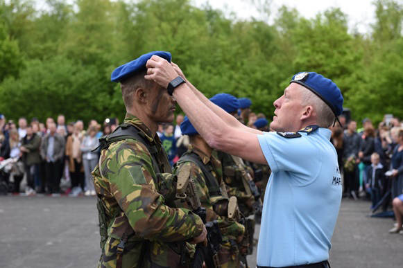 Leerlingen van de lichting 17-02 hebben op de generaal-majoor Kootkazerne in Stroe hun baret ontvangen. Genodigden, leerlingen en kaderleden van het Opleidings-, Trainings- en Kenniscentrum KMar vormden een erehaag om de leerlingen te onthalen als afsluiting van hun 'groene' deel van de opleiding.