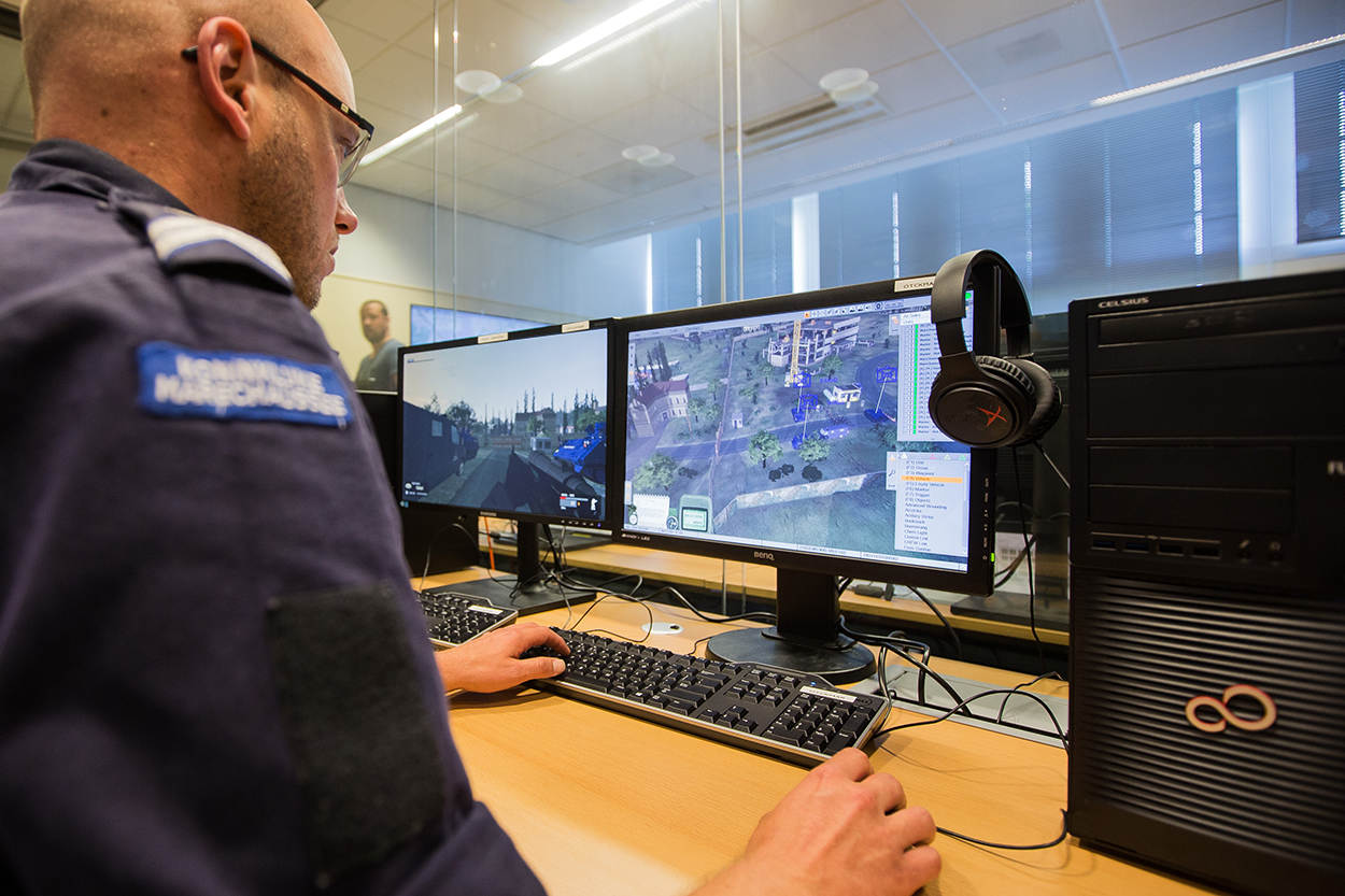 "Vijanden, middelen, escalaties en locaties kunnen spontaan worden toegevoegd of weggehaald. Als je wilt, kunnen we zelfs Paleis 't Loo nabouwen", vertelt Henk Wentink, senior medewerker Media, trots. Als hij vol passie uitweidt over 'zijn' club, de afdeling Media van bureau Opleidingsontwikkeling van het Opleidings-, Trainings- en Kenniscentrum Koninklijke Marechaussee, rolt het ene na het andere voorbeeld over zijn lippen. "Wil je een scenario naspelen op Schiphol of Utrecht Centraal? Dat kunnen we regelen. Optreden in missiegebieden oefenen? Kunnen we voor zorgen. The sky is the limit."