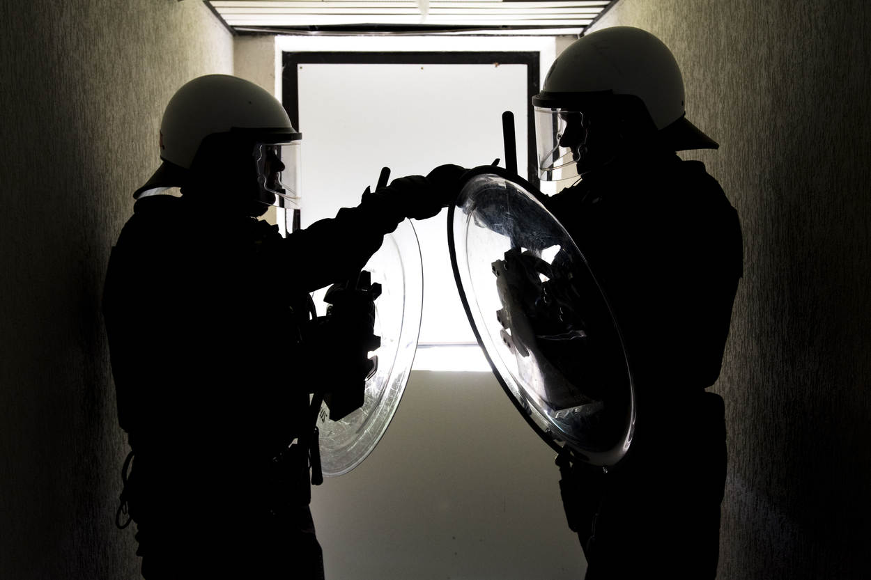 Twee pelotons van de Bijstandseenheid KMar hebben uitgebreid getraind in het Duitse Weeze. De pelotons oefenden er het handhaven van de openbare orde, waarbij op- en af werd geschaald van flex ME naar het hoogste geweldspectrum. De BE’ers kregen een maatwerkprogramma voorgeschoteld, waarin ook het werken met de YPR, de aanhoudingseenheid en de ondersteuningseenheid aan bod kwam. Daarnaast was er ruimte gemaakt om de BE’ers te certificeren voor de HK69 en de FN303 en werden procedures getraind in een vliegtuig en een treinstel.