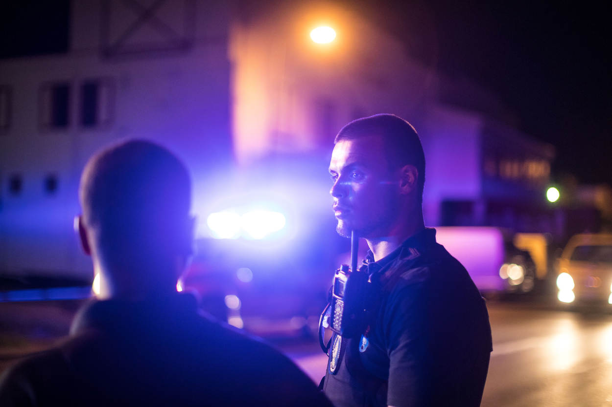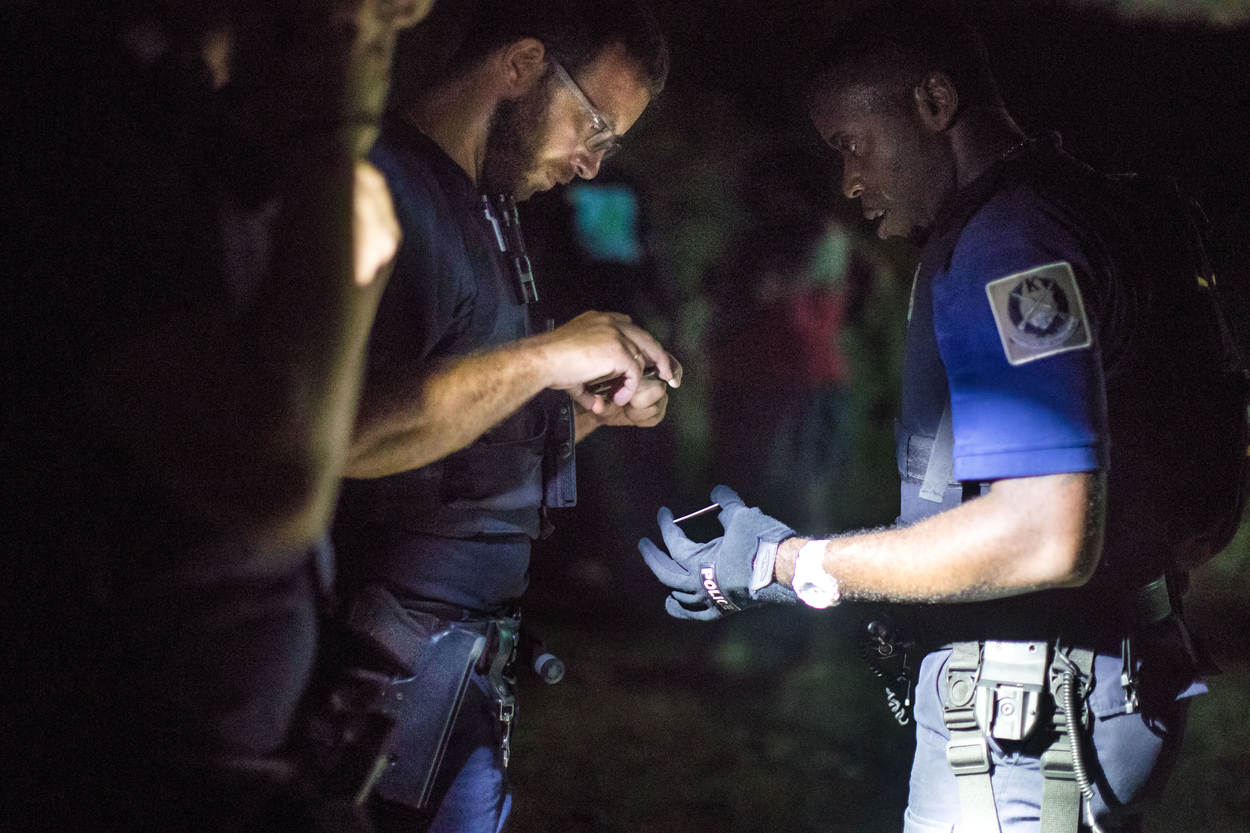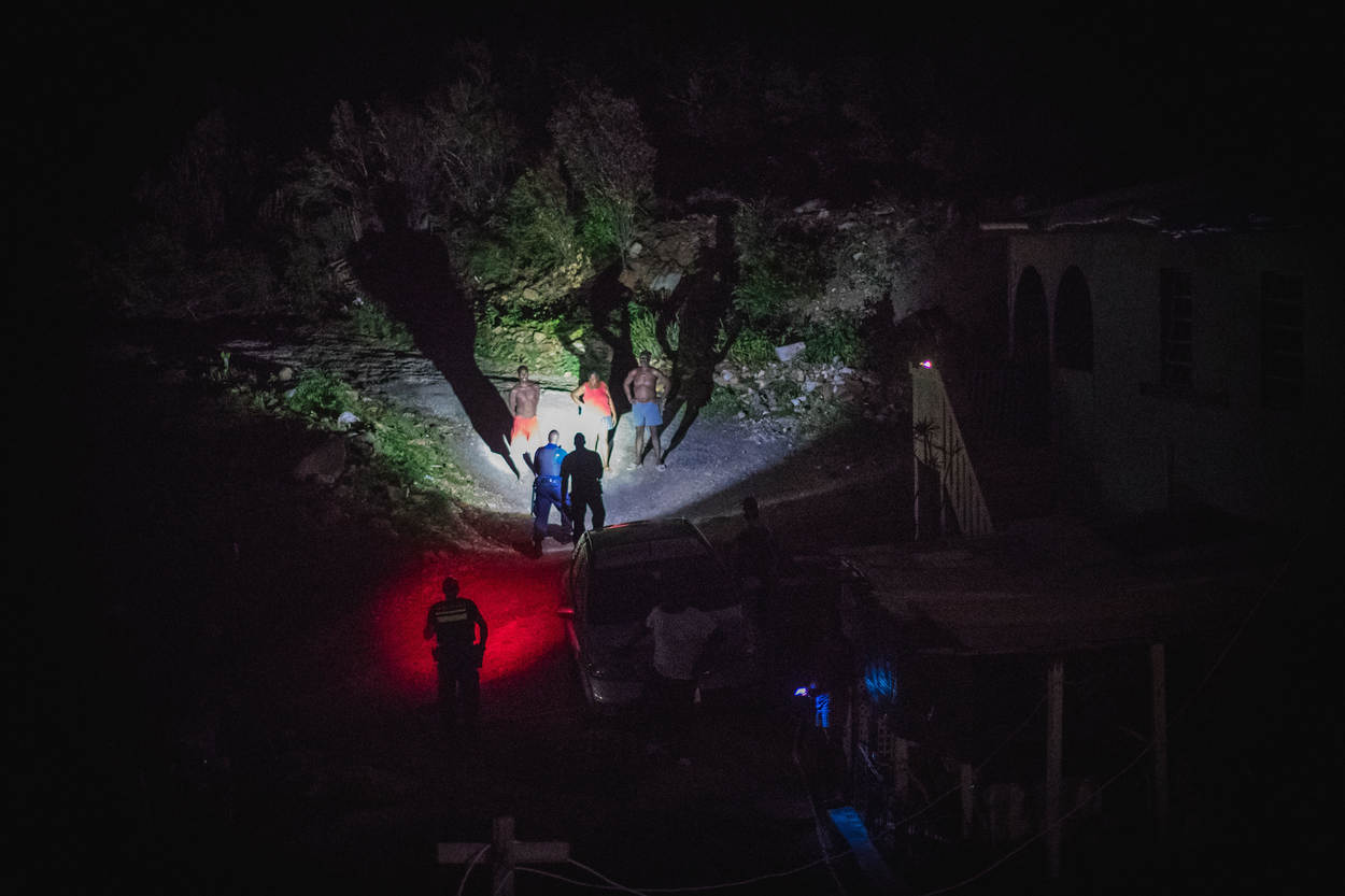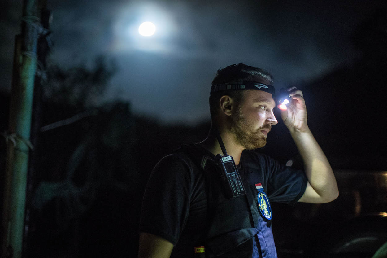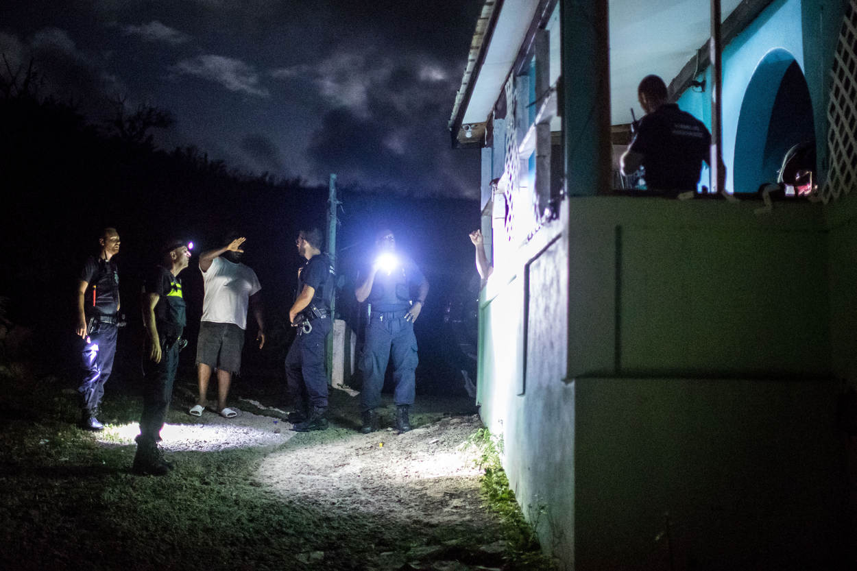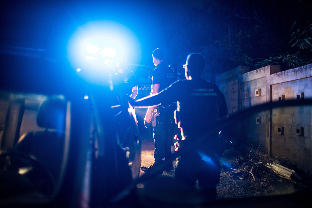 Een fotograaf van KMarMagazine trok een avond op met de marechaussees op Sint-Maarten om hun werkzaamheden te belichten. De KMar ondersteunde het Korps Politie Sint-Maarten (KPSM) onder meer bij een arrestatie, bij een inbeslagname van geplunderde goederen en bij de opsporing van betrokkenen bij een vechtpartij.