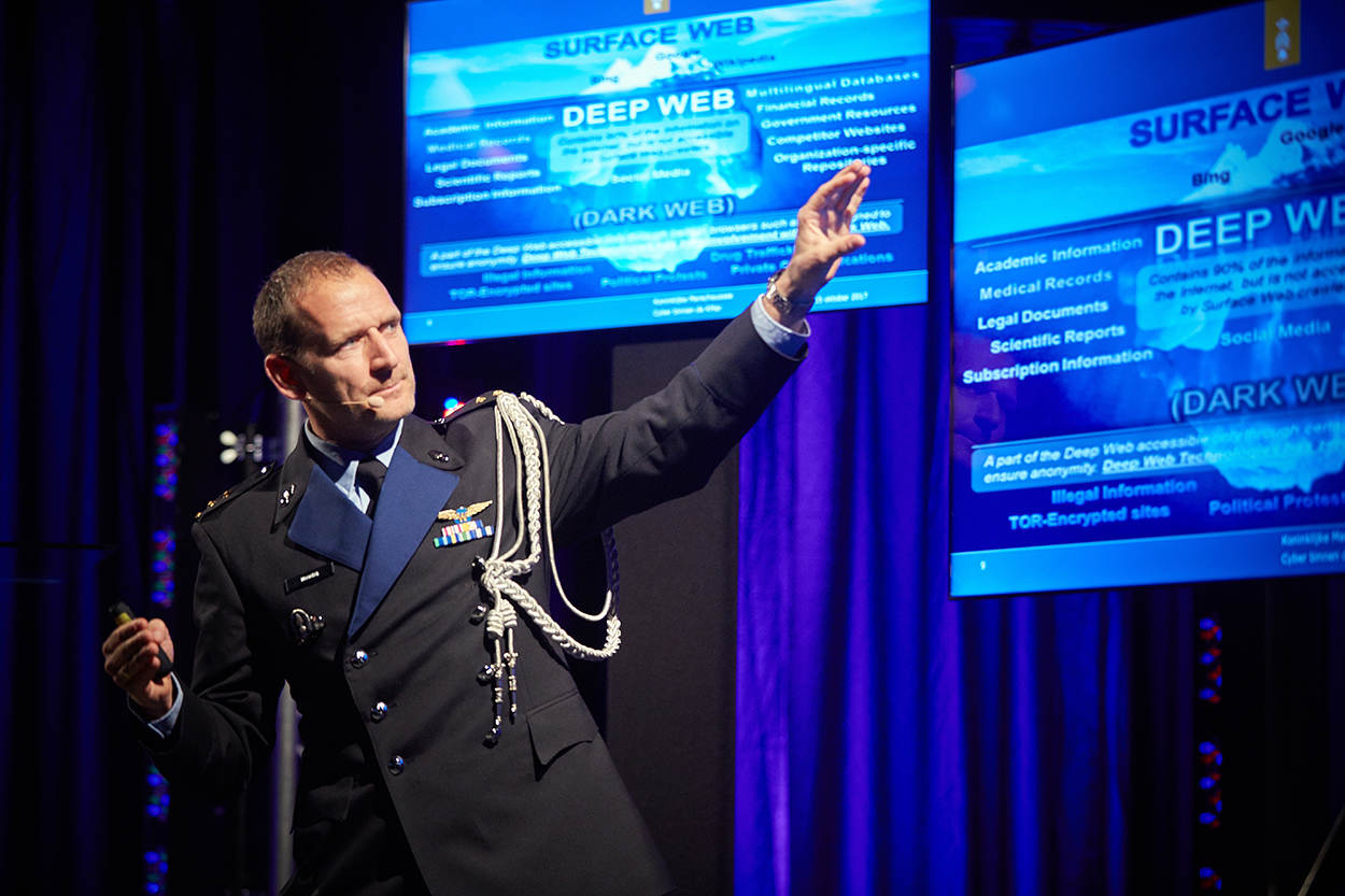 Een stukje verderop neemt luitenant-kolonel Edwin Noordzij, senior stafadviseur Cyber van de KMar, de museumbezoekers mee naar een hele andere wereld: die van het dark web. De meesten hebben er wel eens van gehoord, maar nooit gezien. Noordzij biedt hen dan ook een uniek inkijkje in de krochten van het internet. Wapens, drugs of valse paspoorten kopen? Via een eenvoudige muisklik kunnen internetters anoniem illegale producten aanschaffen.