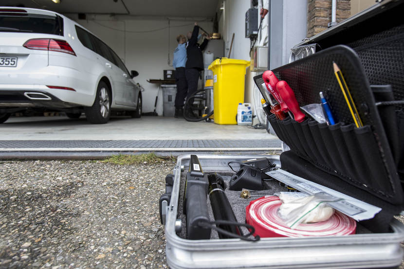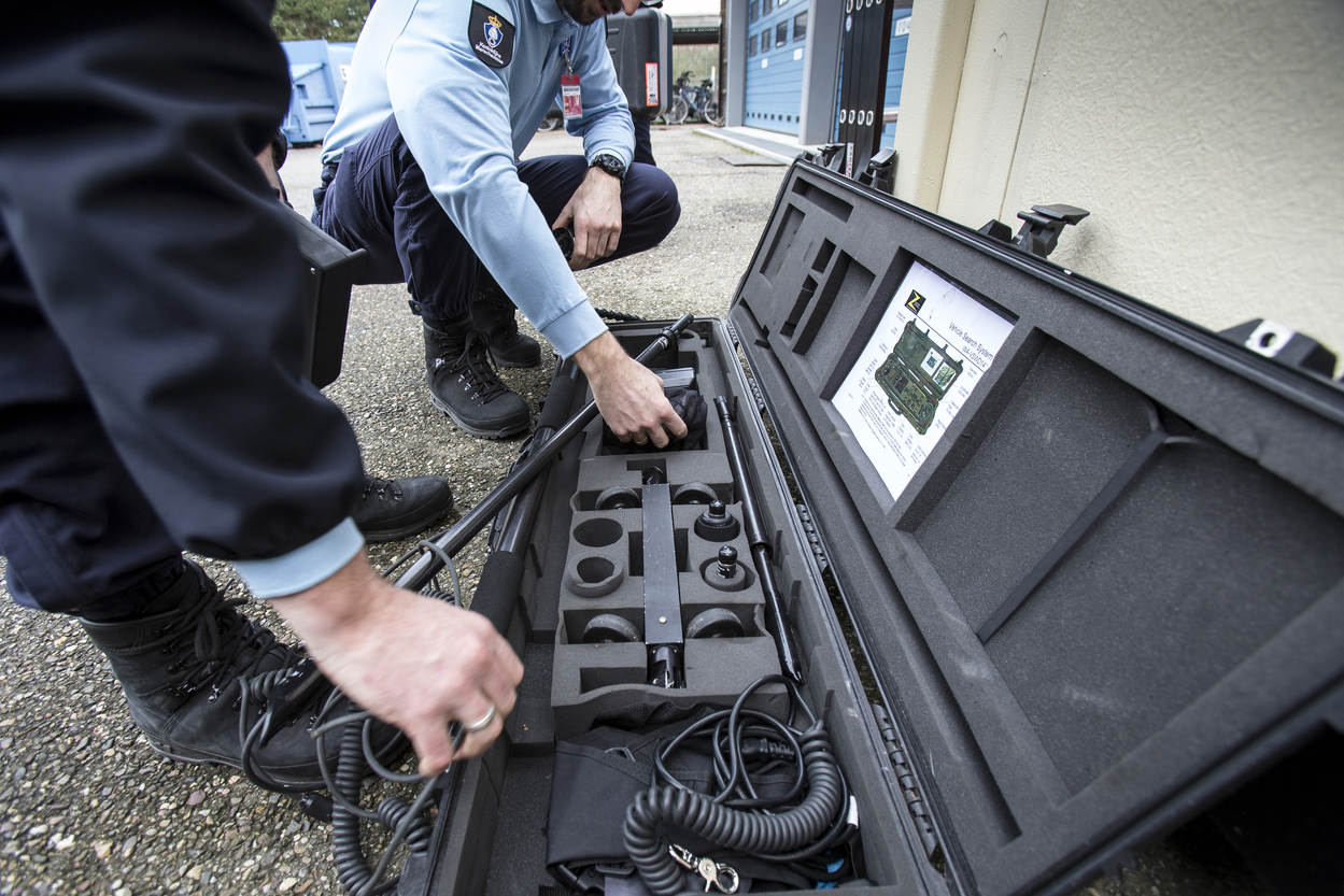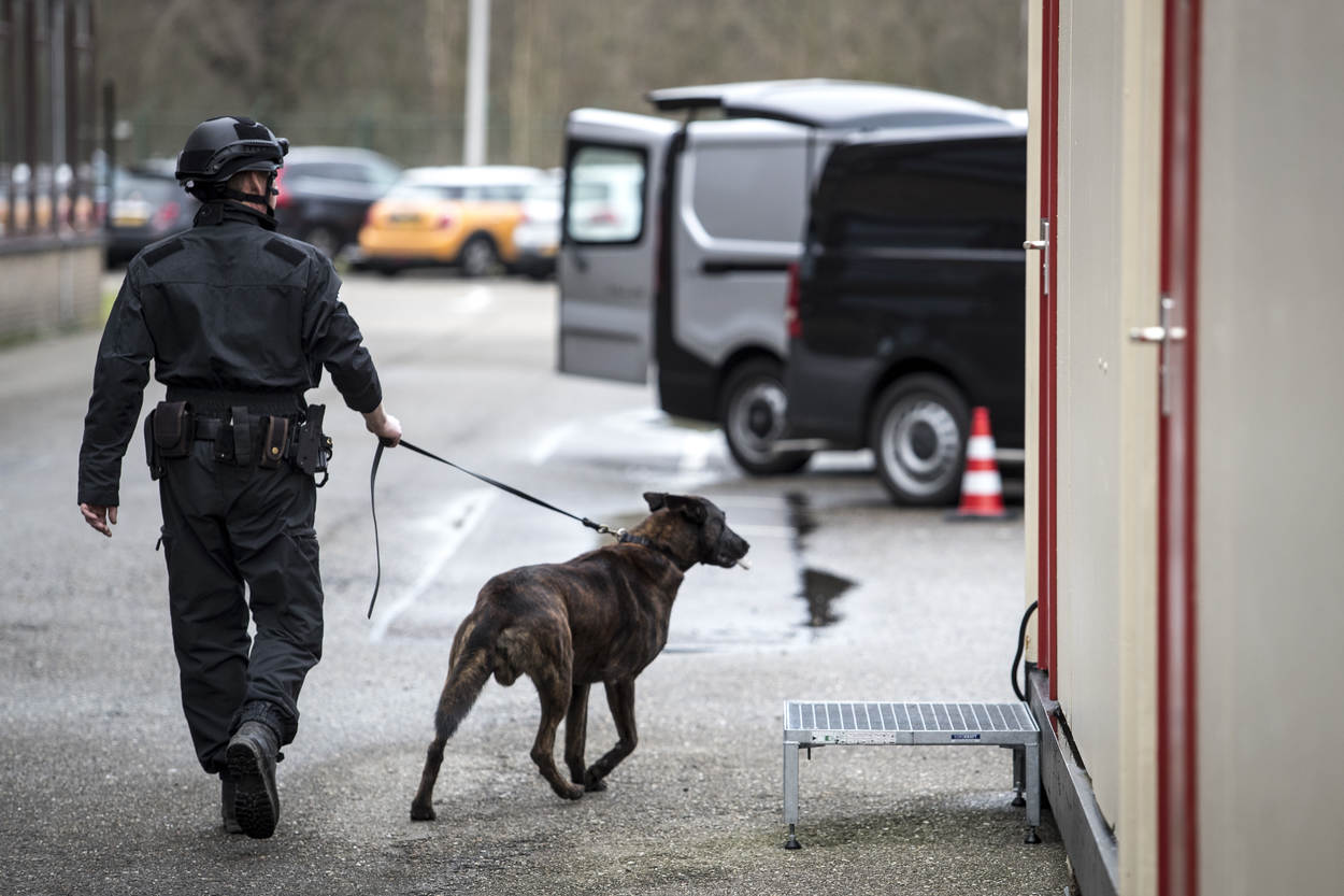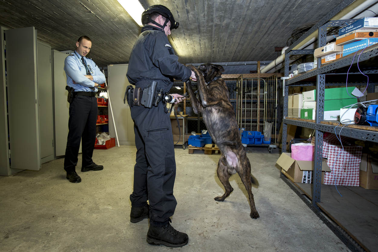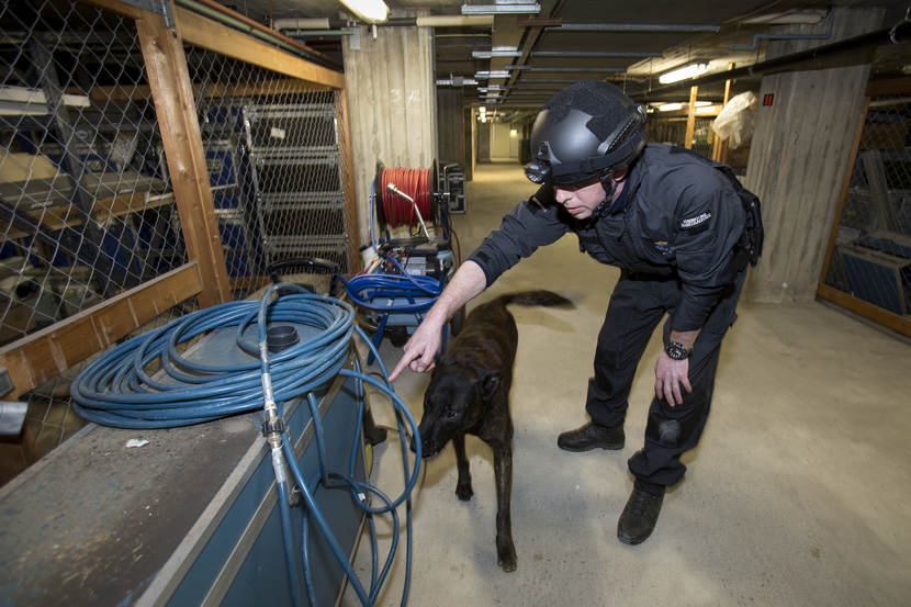 Er is vermoedelijk een explosief verstopt in een van de gebouwen op het NAVO-terrein. De teamleider CBRN-E van de Marechaussee stelt het plan op voor de zoeking. De Officier van Dienst-Politie (OvD-P) van de KMar handelt conform het Protocol Verdachte Objecten en verzorgt ook de verbinding tussen de OvD van het NAVO-complex en andere hulpverlenende instanties. Dat kan bij een vondst ook de Explosieven Opruimingsdienst zijn. Hollandse herder Fonkel en 'baasje' Lex zijn snel ter plaatse. "De explosievenhonden zijn een hulpmiddel", benadrukken de begeleiders. "Meestal willen ze meteen aan de slag, maar soms zijn het net mensen", zegt opper Lex. De hulpmiddelen worden uit de koffers gehaald. De explosievenverkenners van de KMar doen regelmatig preventieve zoekingen, zoals op 4 mei op de Dam. "We werken daarin veel samen met de politie, die een soortgelijke eenheid als de onze heeft", weet instructeur adjudant Edwin Branse. Buiten controleert een explosievenverkenner de voertuigen op het terrein. Mogelijk zijn ook hier explosieven verstopt. "Evacueren, nieuwsgierigen op afstand houden. En vooral nauwkeurig alle stappen bijhouden, zodat iedereen in dit vak ervan kan leren." Ook de garage ondergaat een grondige inspectie. De 'explosieven' zijn op de gekste plaatsen verstopt, zoals in een ijsmachine. Dan komen de explosievenhonden heel goed van pas. Binnen de kortste keren pakken ze de geur op en gaan erop af. In alle gaten en kieren zoeken de explosievenverkenners naar verdachte objecten. Met spiegels en infrarood-apparatuur is veel te vinden. In de kelder gaat 'explosievensnuffelaar' Boris zitten. Het betekent dat hij iets heeft gevonden. Opperwachtmeester Bas gaat verder op onderzoek uit. Er zit iets in de machine verstopt. "Zoek!" Hondenfluisteraar Martin Gaus zou Fonkel wel wat manieren willen bijleren, maar dat is juist niet de bedoeling. "Ze moeten gretig zijn en in dit spel ook daadwerkelijk iets vinden. Anders gaat de lol er snel vanaf voor de honden." Fonkel heeft z'n best gedaan en krijgt een beloning van opper Lex. Het werk voor explosievenhond Fonkel en opper Lex zit erop. Op de plaats rust: de evaluatie van de zoektocht is gaande. Herder Boris kijkt verwachtingsvol naar zijn begeleider. De hond wil nog wel een keer spelen in de kelder, op zoek naar mogelijke explosieven.