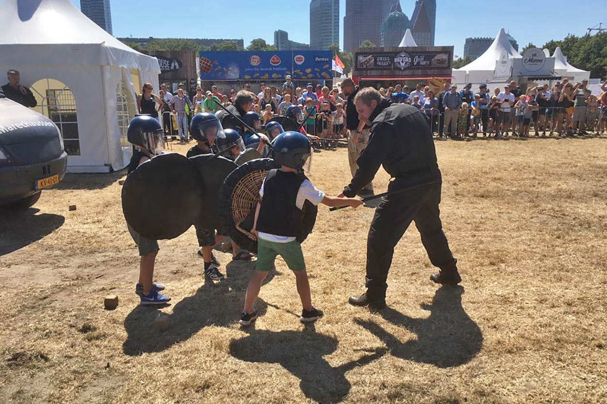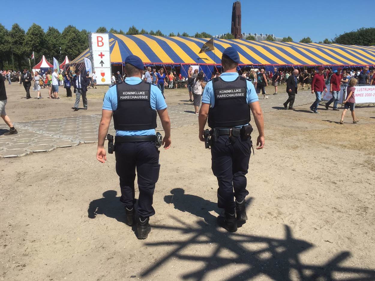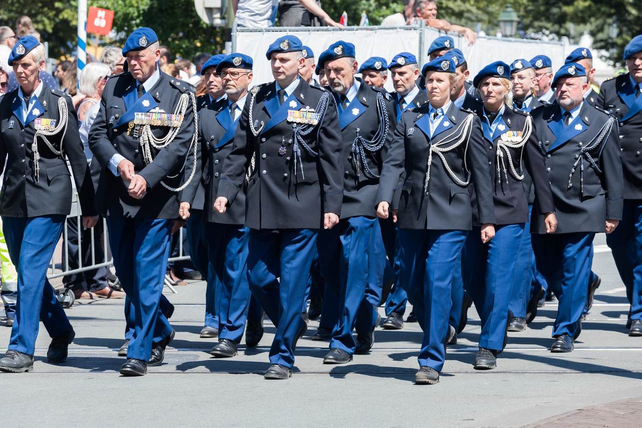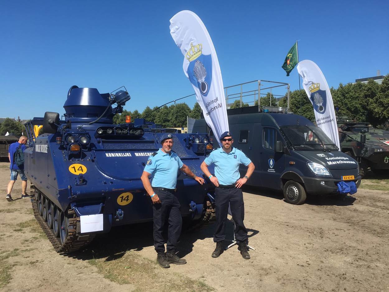 Op het Binnenhof krijgt luitenant-kolonel Daisy Costongs de herinneringsmedaille opgespeld voor haar bijdrage als genderadviseur aan de NAVO-missie Resolute Support in Afghanistan. Even na 13.00 uur begon het kleurrijke defilé door de Haagse binnenstad. Namens de KMar liepen het Opleidings-, Trainings- en Kenniscentrum Koninklijke Marechaussee (OTCKMar), het Landelijk Tactisch Commando (LTC), Staf CKMar en het Trompetterkorps mee in het defilé. De Nederlandse Veteranendag is een eerbetoon aan ruim 115.000 militairen. Circa 90.000 bezoekers applaudisseerden en zwaaiden het défilé enthousiast toe langs de route. Aangekomen bij de koning zong het Trompetterkorps der Koninklijke Marechaussee uit volle borst het Wapenlied. Bijna 4.000 veteranen en militairen marcheren rond de Hofvijver, gevolgd door historische en moderne voertuigen. Bezoekers konden onder meer een YPR van de Bijstandseenheid West bewonderen en een Amarok van het Landelijk Tactisch Commando. Veteranen zijn er in vele ‘soorten en maten’. Van oudgedienden uit de Tweede Wereldoorlog tot actief dienende marechaussees die op missie gingen naar bijvoorbeeld Afghanistan of Mali. Ook de Stichting Marechaussee Contact (SMC) gaf acte de présence. De stichting is toegankelijk voor iedereen die op de hoogte wil blijven van het reilen en zeilen bij de Koninklijke Marechaussee. ME’ertje spelen? Gaaf! Fanatiek stonden kinderen in ME-tenue op linie. In het activiteitenpark op het Malieveld leerden ze hoe de KMar optreedt bij ongeregeldheden. Op het Malieveld kon jong en oud kennismaken met stichtingen en verenigingen, naar muziek luisteren of materieel van dichtbij bekijken, zoals een YPR en een Mobiele Eenheid (ME)-voertuig. Collega's van de Militaire Politiezorg hielden een oogje in het zeil op het Malieveld, dat tijdelijk gold als militair terrein.